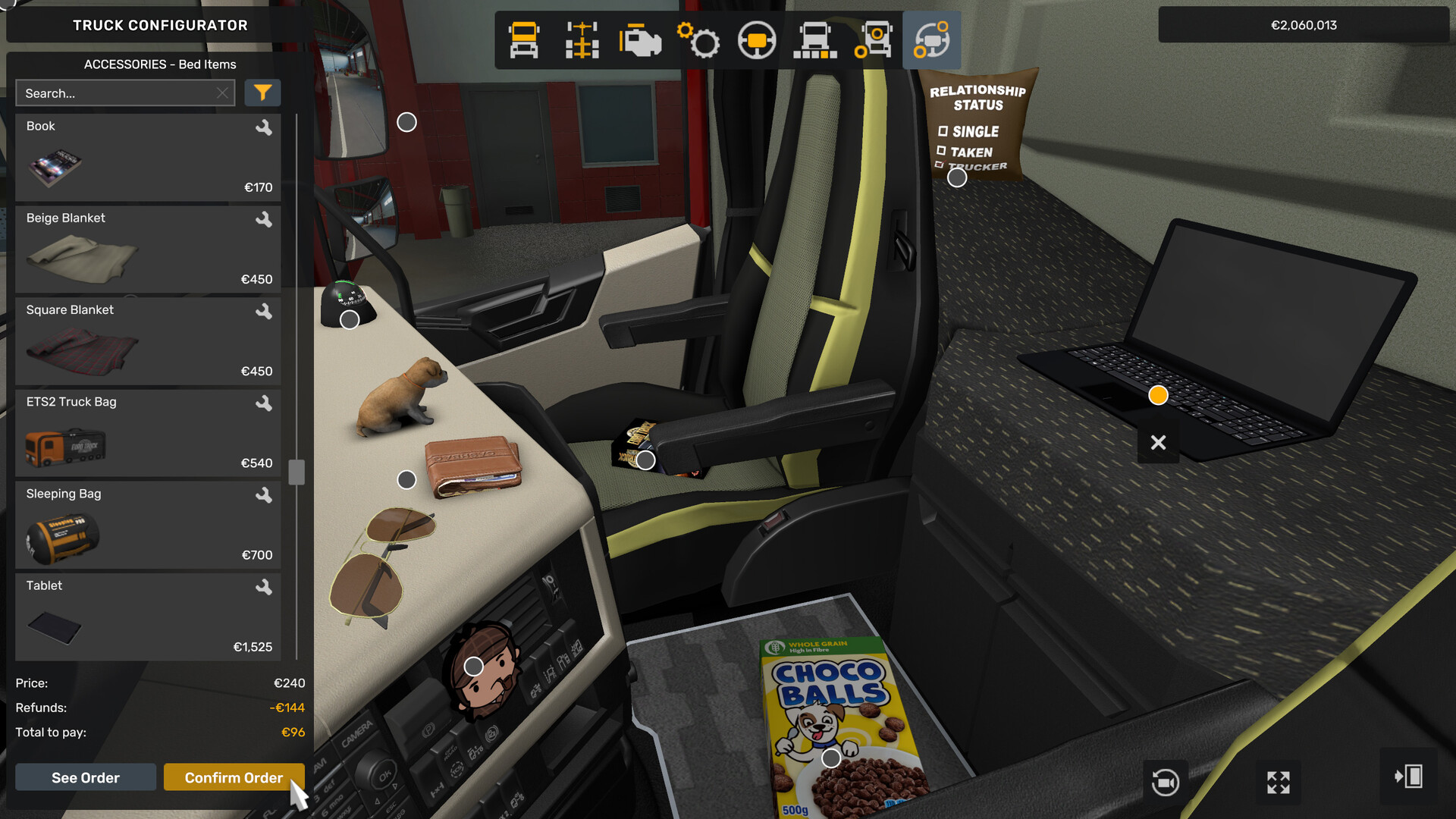 트럭 캐빈의 내부를 실용적일 뿐만 아니라 전혀 실용적이지 않은 액세서리와 장난감으로 장식하세요!