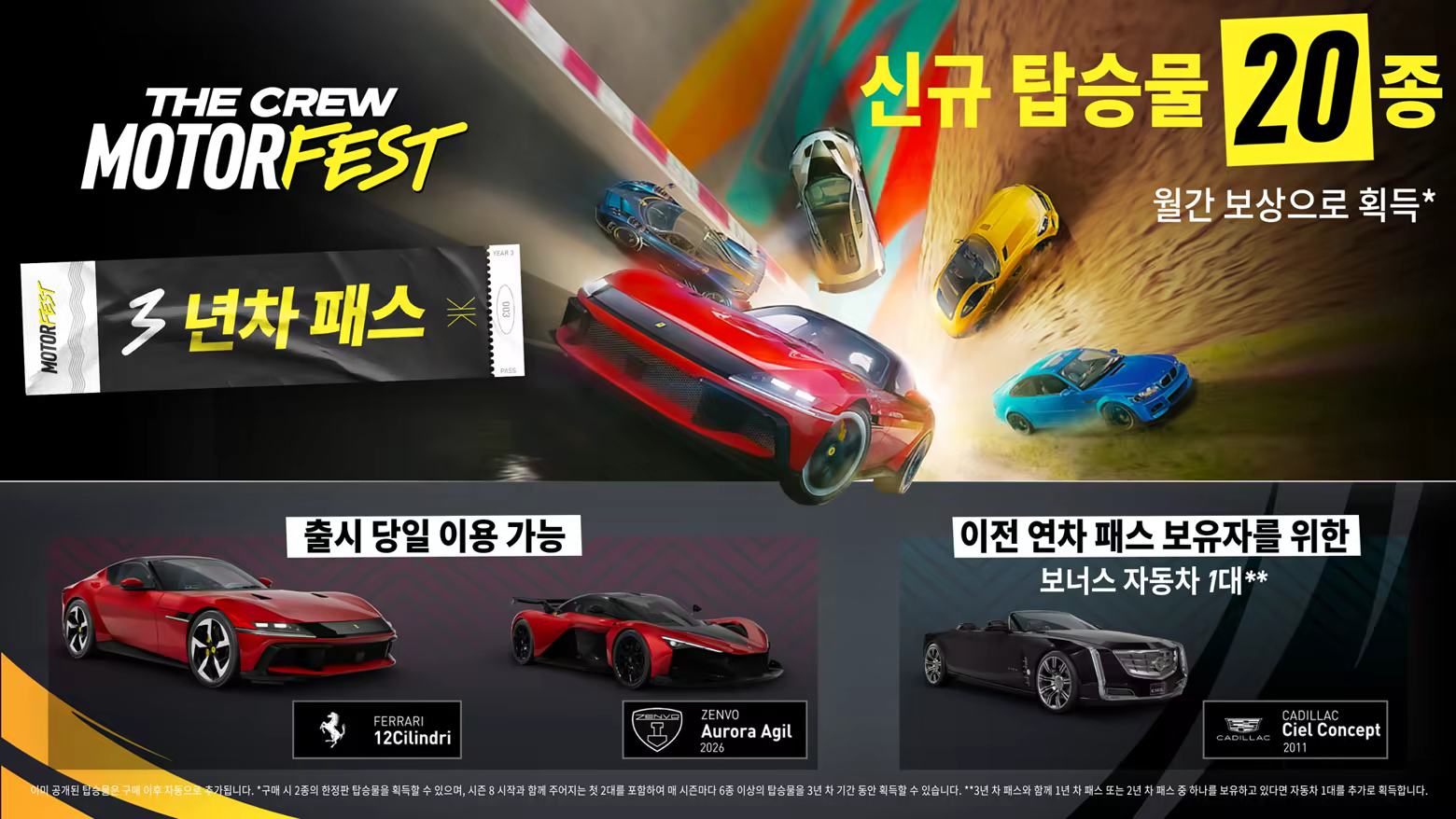 - 월간 보상*으로 총 20종의 신규 탑승물 제공, 출시 당일 전용 탑승물 2대 포함(Ferrari 12Cilindri (2025) 및 Zenvo Aurora Agil (2026)