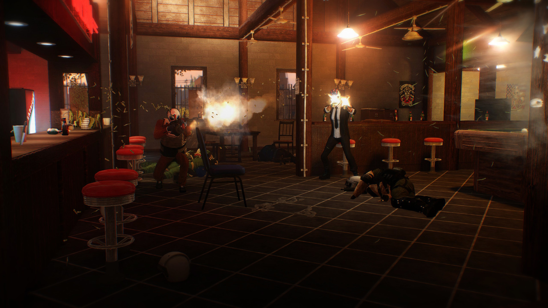- LION'S DEN - Rust’s old home. The clubhouse of the OVERKILL MC. And also the location of his precious and, unfortunately dismantled - bike. The PAYDAY gang pays a visit to this rowdy place of illegal activities and beer chugging, where they need to free a certain mechanic. They’ll face both angry, betrayed bikers and plenty of cops. As the well known sh*t hits the diesel fueled fan, the PAYDAY gang needs to piece the bike back together and get out.
