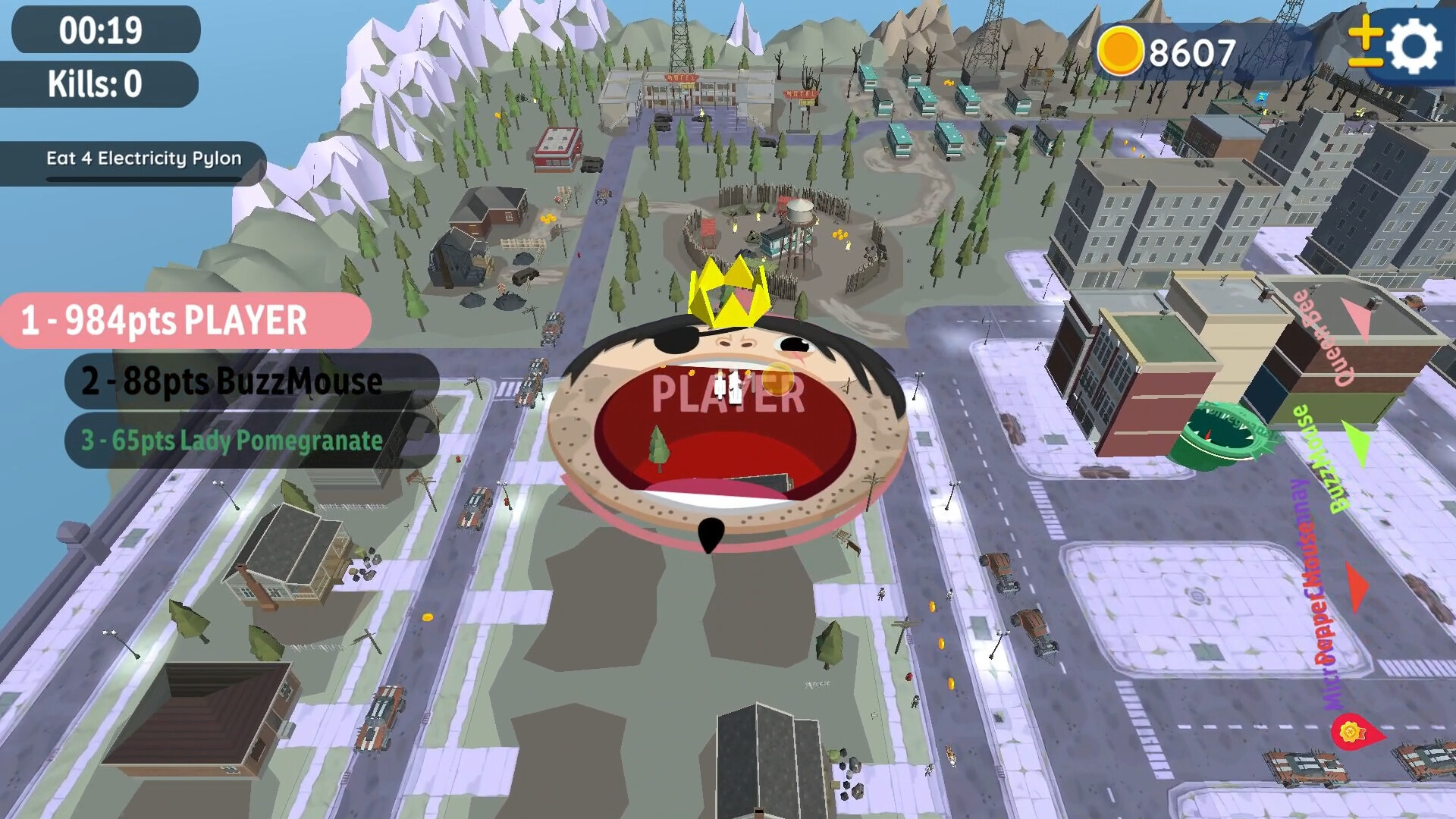 멋진 스킨을 고르고 쓰레기, 자동차, 은신처, 모텔, 버려진 건물, 발전소를 먹고 거대해지세요!