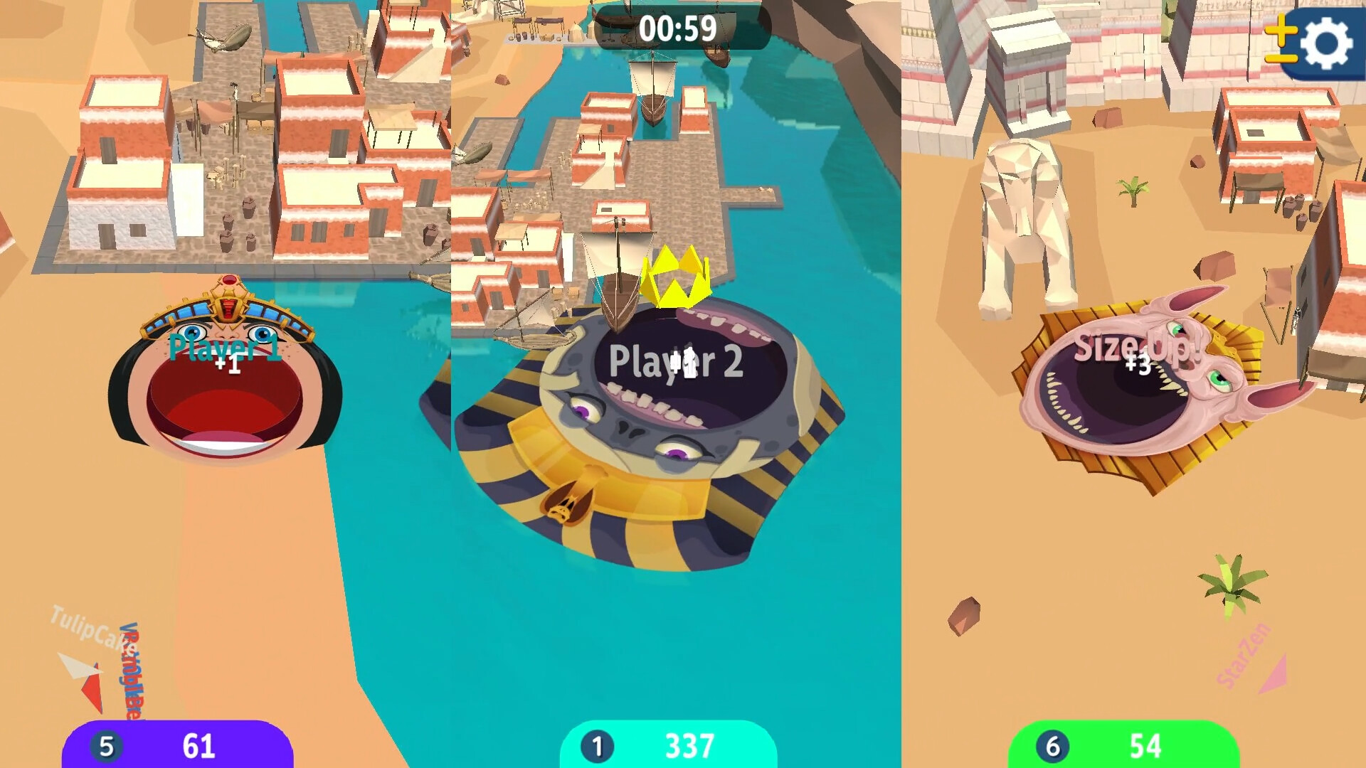 멋진 스킨을 고르고 항아리, 노점, 집, 스핑크스, 배, 피라미드를 먹고 거대해지세요!