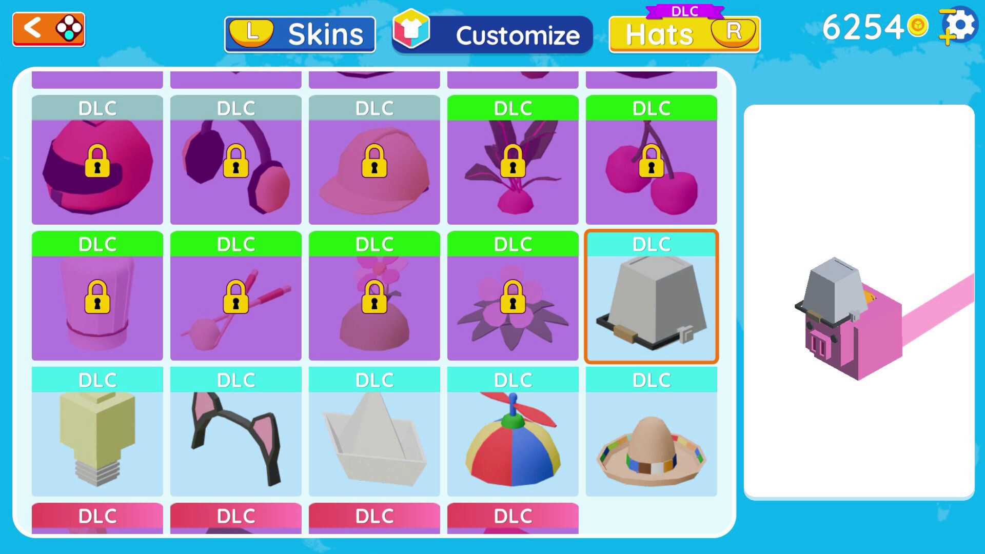 - 6가지 모자: 프로펠러 모자, 솜브레로, 종이접기 모자, 고양이 귀, 양동이, 전구