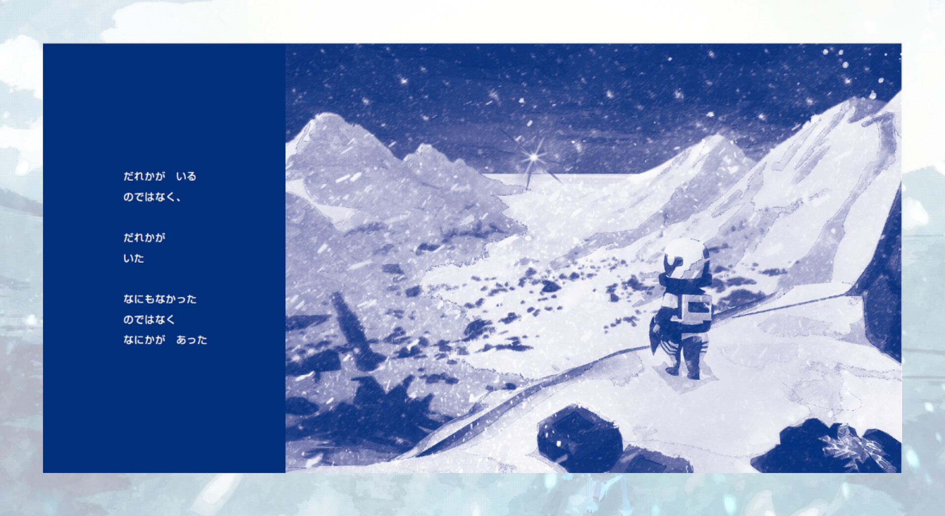 『Nova Antarctica』의 공식 비주얼 북. 개발 팀의 미공개 일러스트를 포함한 15점의 섬세한 일러스트와 아티스트로 활동 중인 후세 린타로(Rintaro Fuse)가 『남극 계획』의 세계관을 표현한 14편의 시를 수록했습니다. (총 32페이지) 시와 일러스트를 통해 남극 계획의 아름다운 세계관을 즐겨보시기 바랍니다.