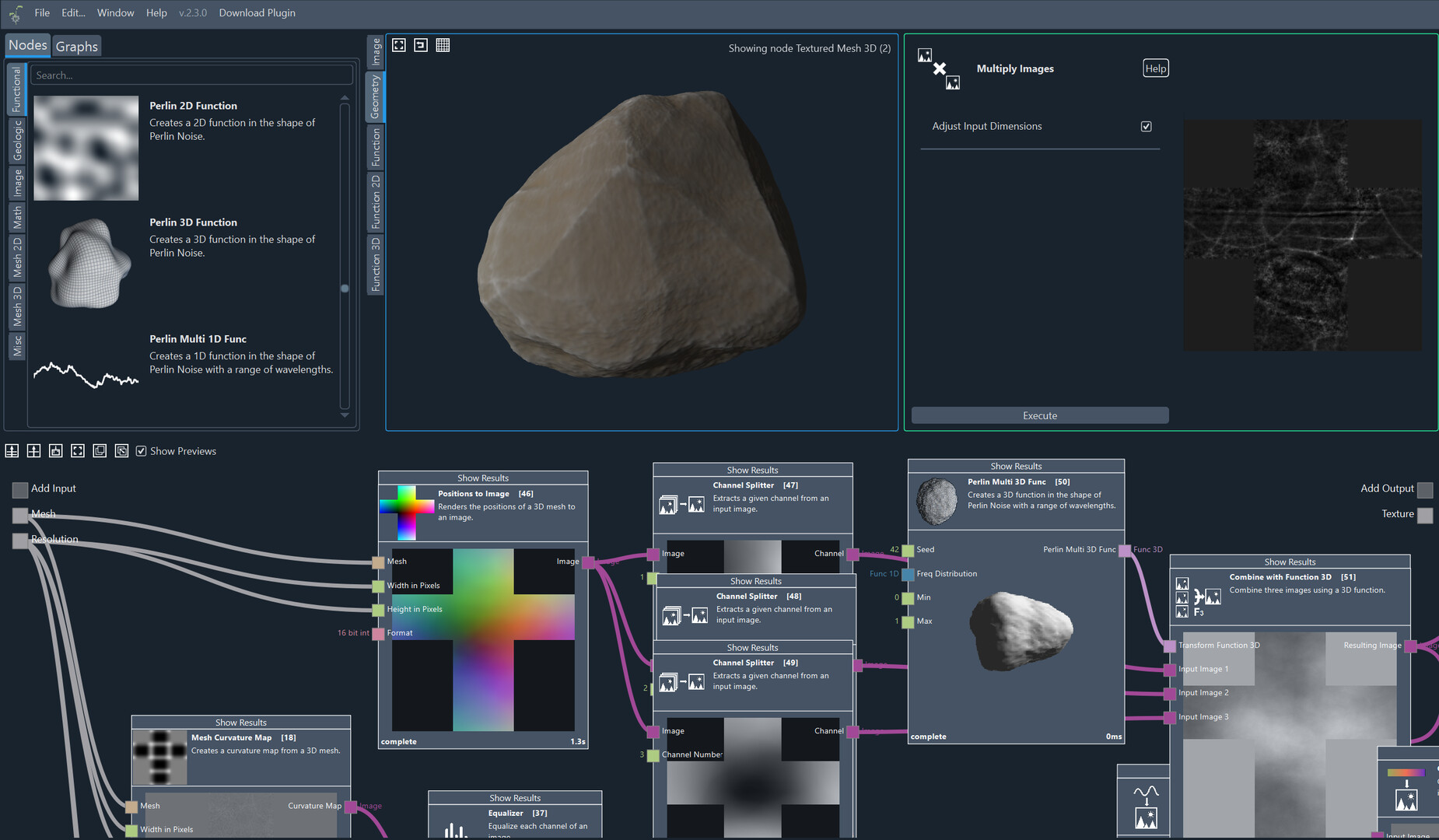 Versatile Node Editor: Advanced tools such as loops, conditional logic, subgraphs, and recursion cater to complex procedural workflows.