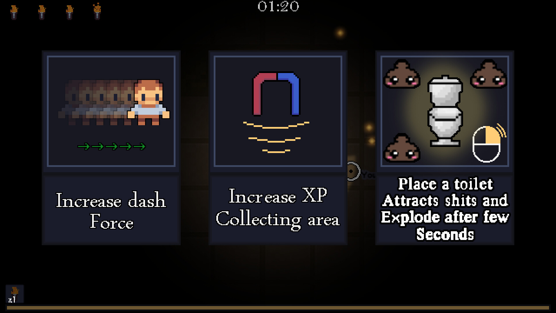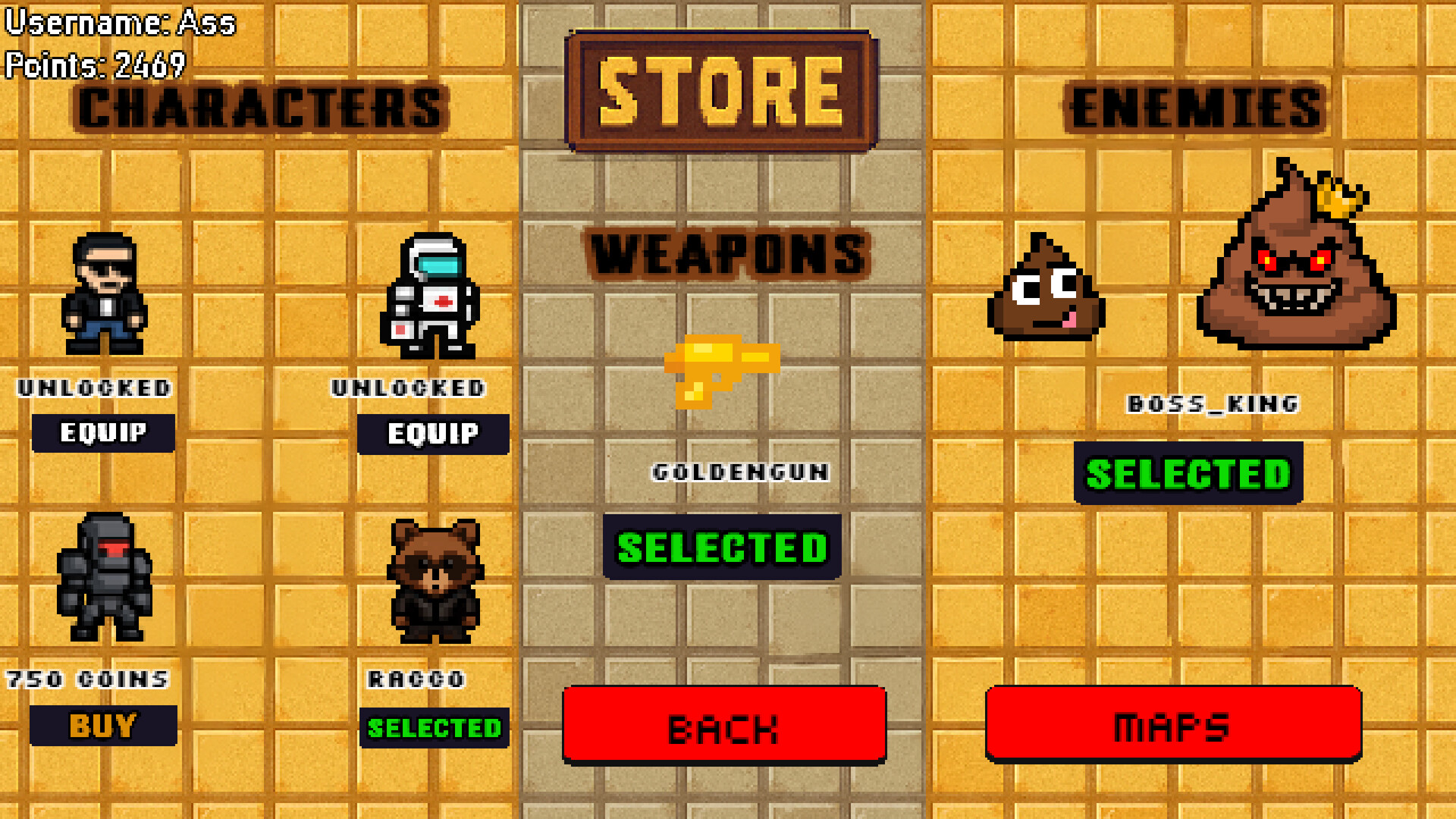 Call of Dookie is a fast-paced top-down arena survival shooter with pixel-art visuals, dark humor, and pure chaos. Armed with a water gun, you’ll fight endless waves of ridiculous enemies, unlock new characters, weapons, and maps, and see how long you can survive the mess.