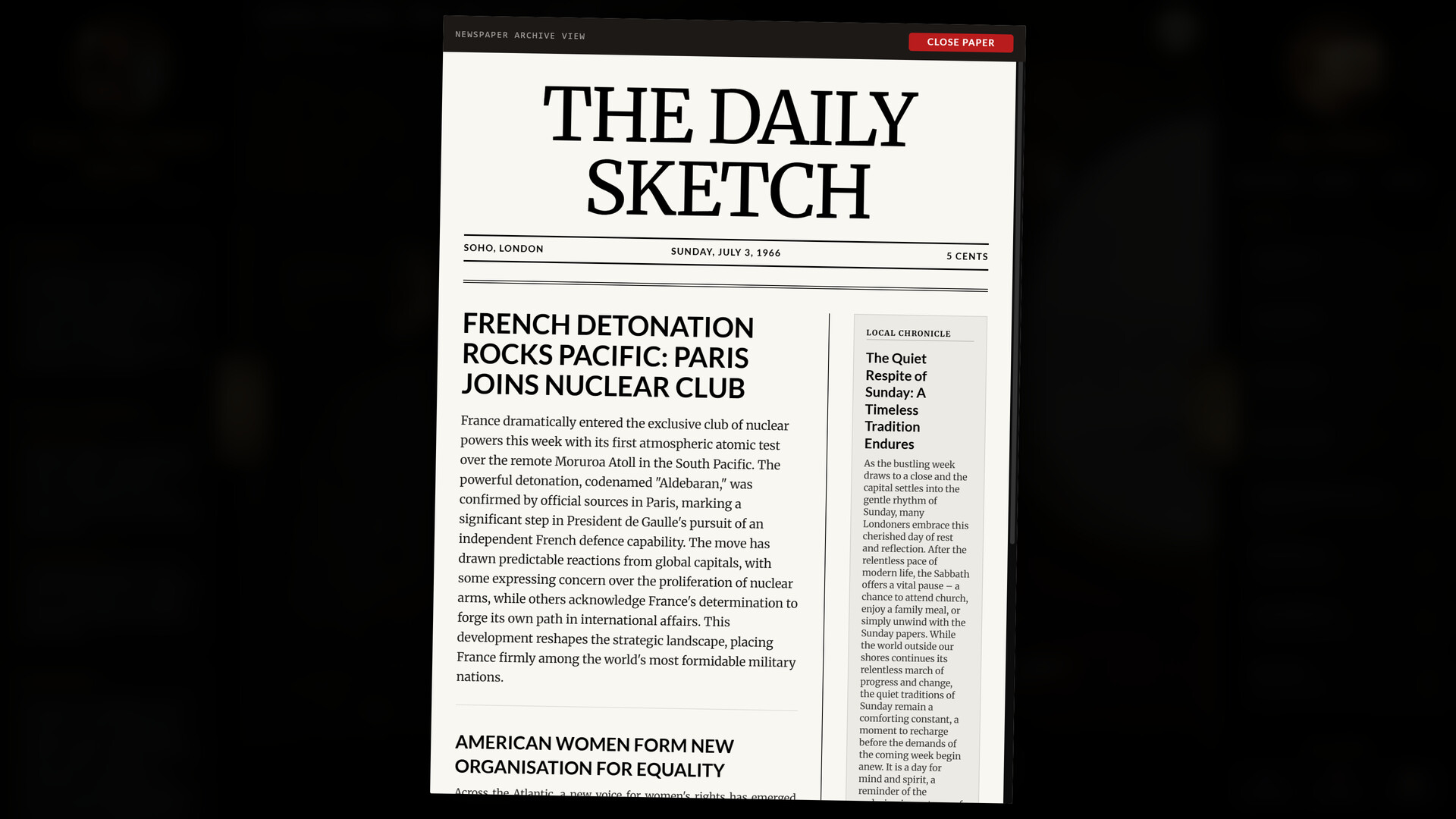 The Sunday Paper: Every in-game Sunday, a newspaper is generated based on real historical events from that exact week in history, unlocking new conversation topics with NPCs.