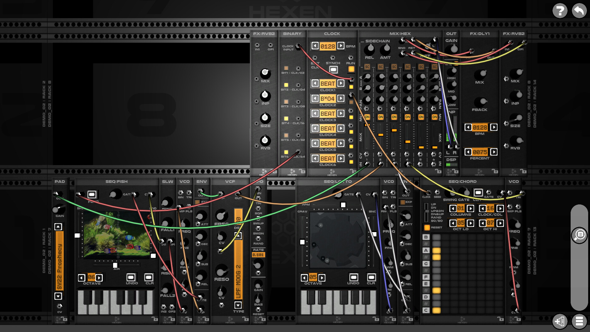 A modular synthesizer is a special type of synthesizer that works via the connection of individual building blocks called modules. Each module has its own specific task such as generating/shaping signals, volume control, rhythm, and much more. The primary advantage that modular synthesizers have over standard synthesizers is that is that they offer much more experimentation thanks to a virtually unlimited combinations of modules. Allowing for absolute flexibility and control through their modular nature. Hexen - Modular Synthesizer is therefore great for beginners to experiment and learn the basics of synthesis as well as for experienced users to be able to create incredibly deep and complex music in virtually any genre.