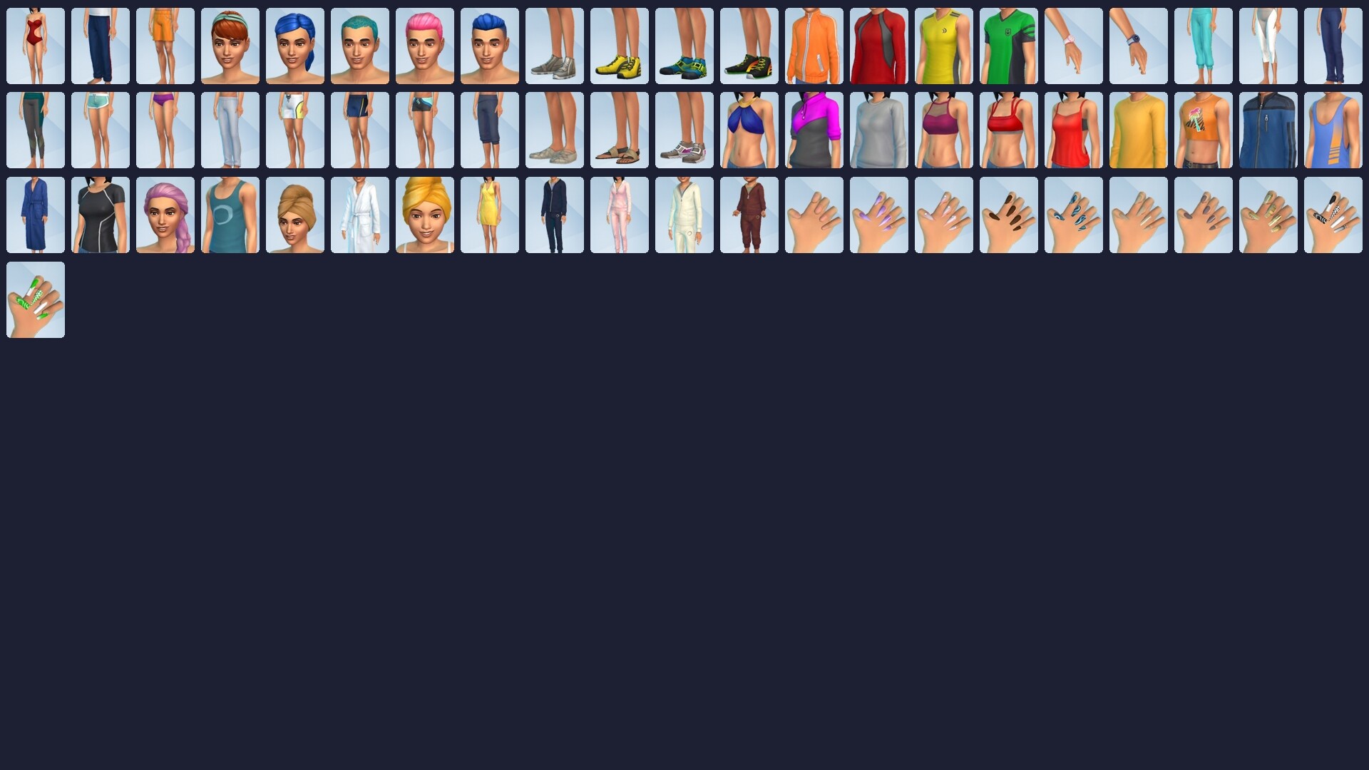 - 편안한 스타일 — 세련된 "라운지 휴식복"과 느슨하면서도 고상한 헤어스타일 덕분에 편안함을 위해 스타일을 포기할 필요가 없습니다! 리프레시: 이제 네일도 지원합니다! 새로운 네일 색상, 디자인, 형태로 자신만의 스타일과 개성을 뽐낼 수 있습니다!