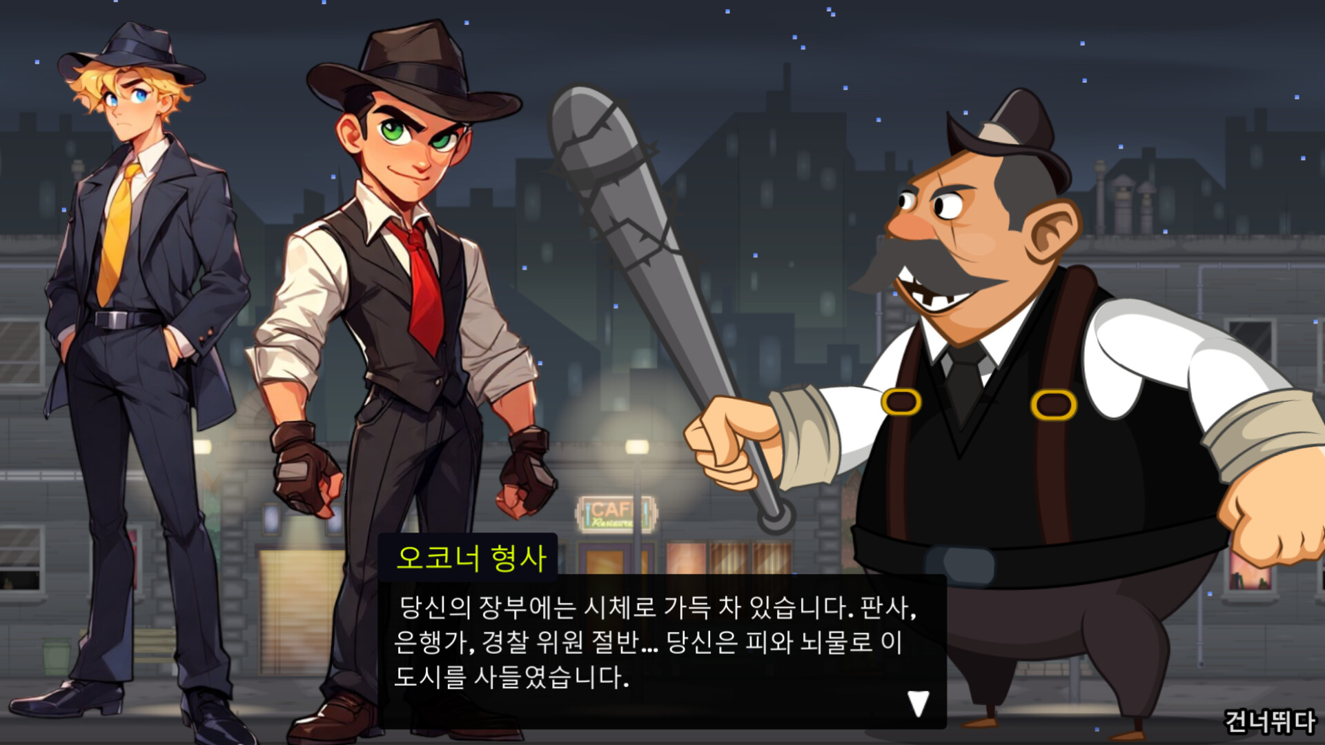 타워 디펜스 전략과 캐릭터 중심 드라마가 금주법 시대 배경 속에서 절묘하게 어우러진 장르 융합 게임입니다.