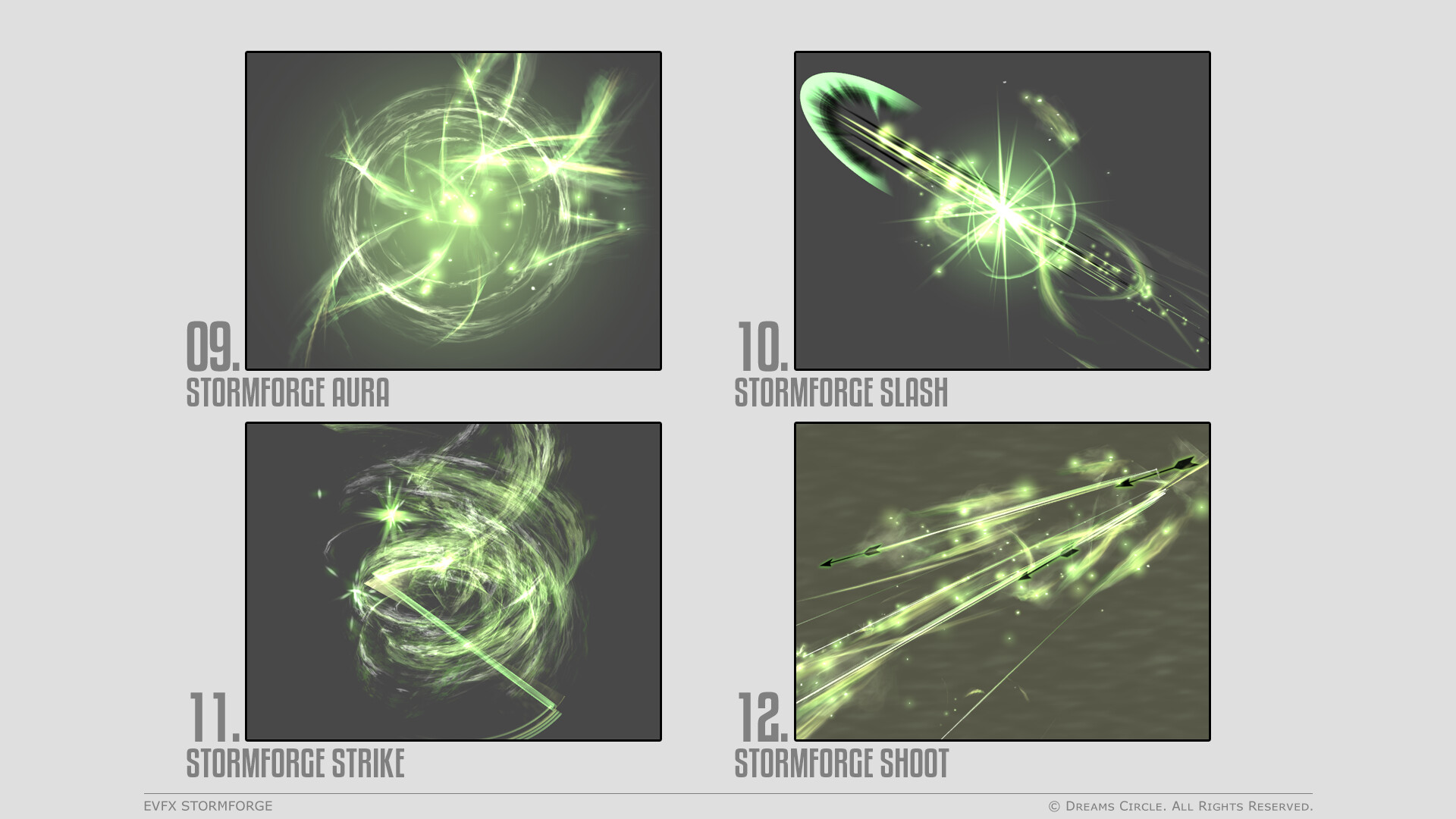 Designed by Dreams Circle, a team specializing in high-quality game assets, "EVFX Stormforge" features 16 gorgeous visual effects AND complementary sound effects, allowing you to add that professional polish to your projects easier than ever before and awe your audience!