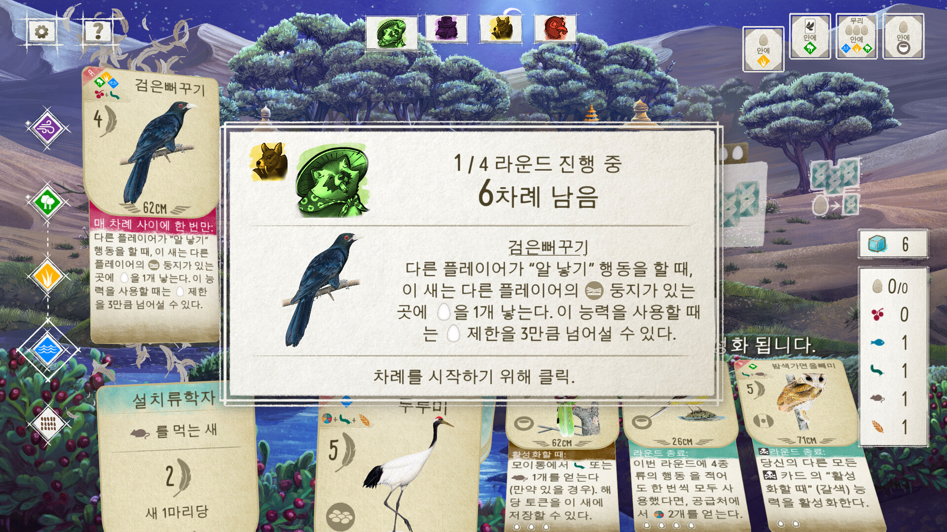 윙스팬 디지털이 새로운 대륙에 도착했습니다. 윙스팬: 아시아 확장에서 신비롭고 다양한 동양의 새와 그 매혹적인 세계를 만나보세요. 새로운 새와 보너스 카드를 만나고, 아시아 지역에서 영감을 받은 새로운 배경과 초상화로 컬렉션을 확장하고, 완전히 새로운 모드를 통해 게임에 신선한 바람을 불어넣고 더욱 다양성을 더할 수 있습니다.