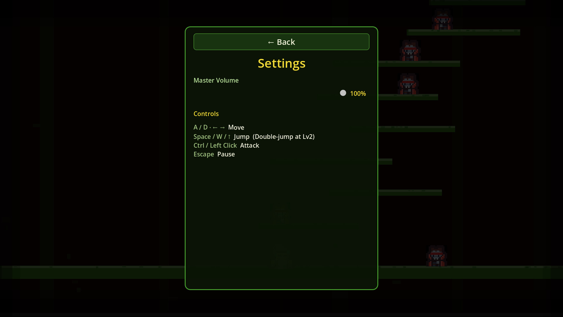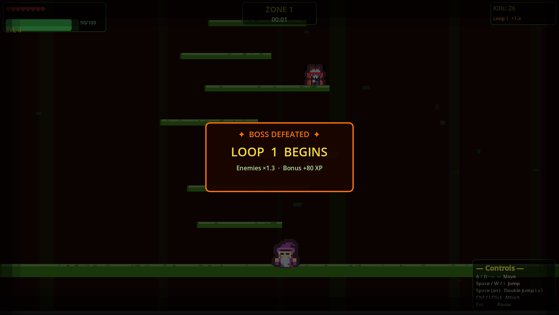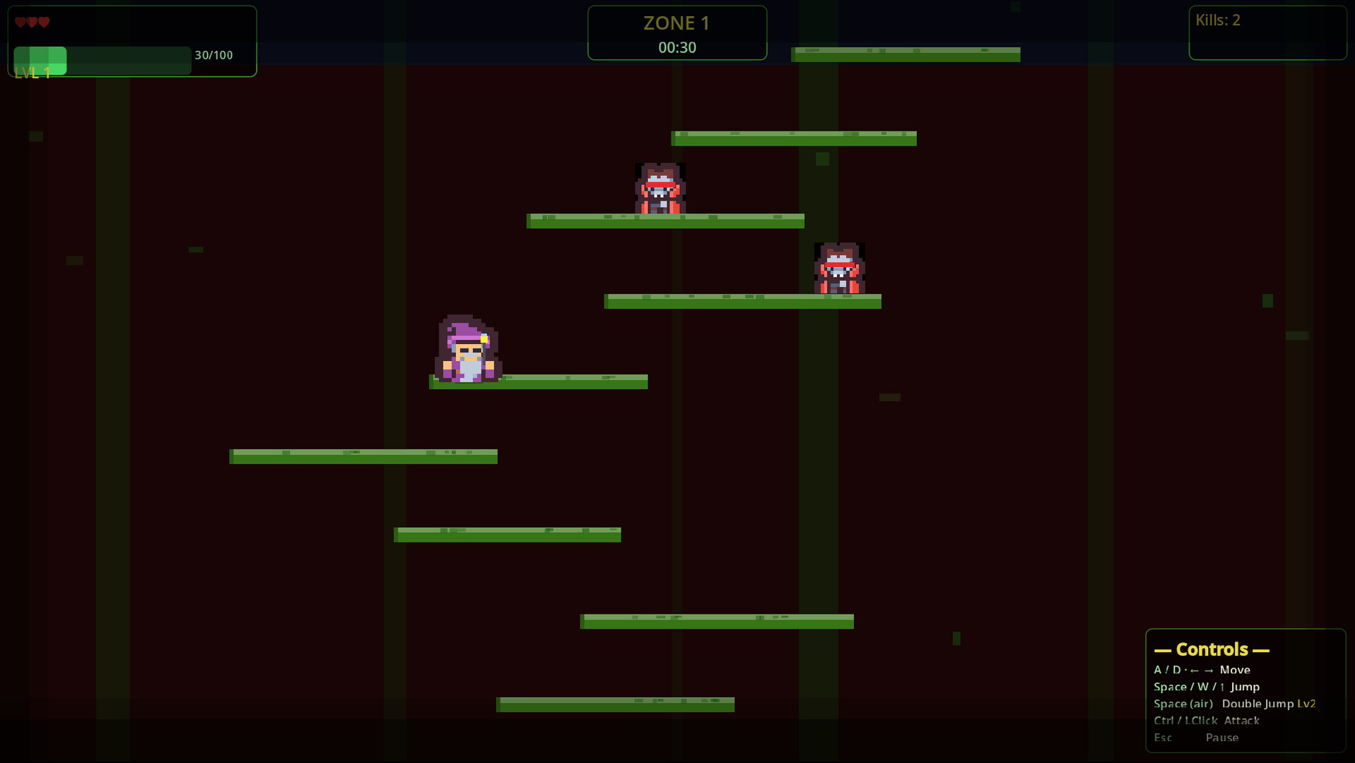 Climb the Forbidden Jungle Tower in this quick little 2D platformer. Start at the bottom and jump your way up, taking out spiders, snakes, scorpions, and bats along the way. Kill enemies to earn XP, level up your character for more health, stronger hits, and a double jump, then push higher through tougher sections until you reach the top.