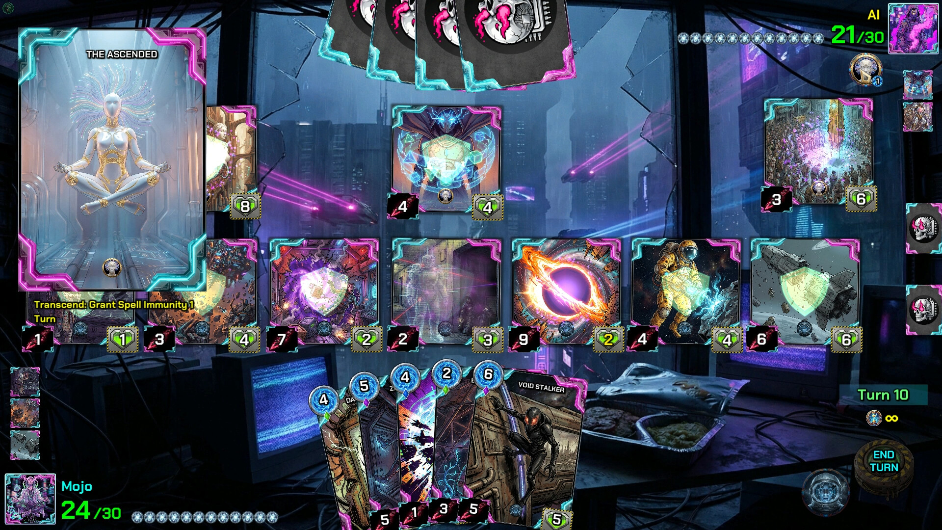 The Transcended: Post-human deities made of gold and light. Achieve "Transcendence" to grant Spell Immunity to your units, making them untouchable by enemy hacks, removal spells, and debuffs.