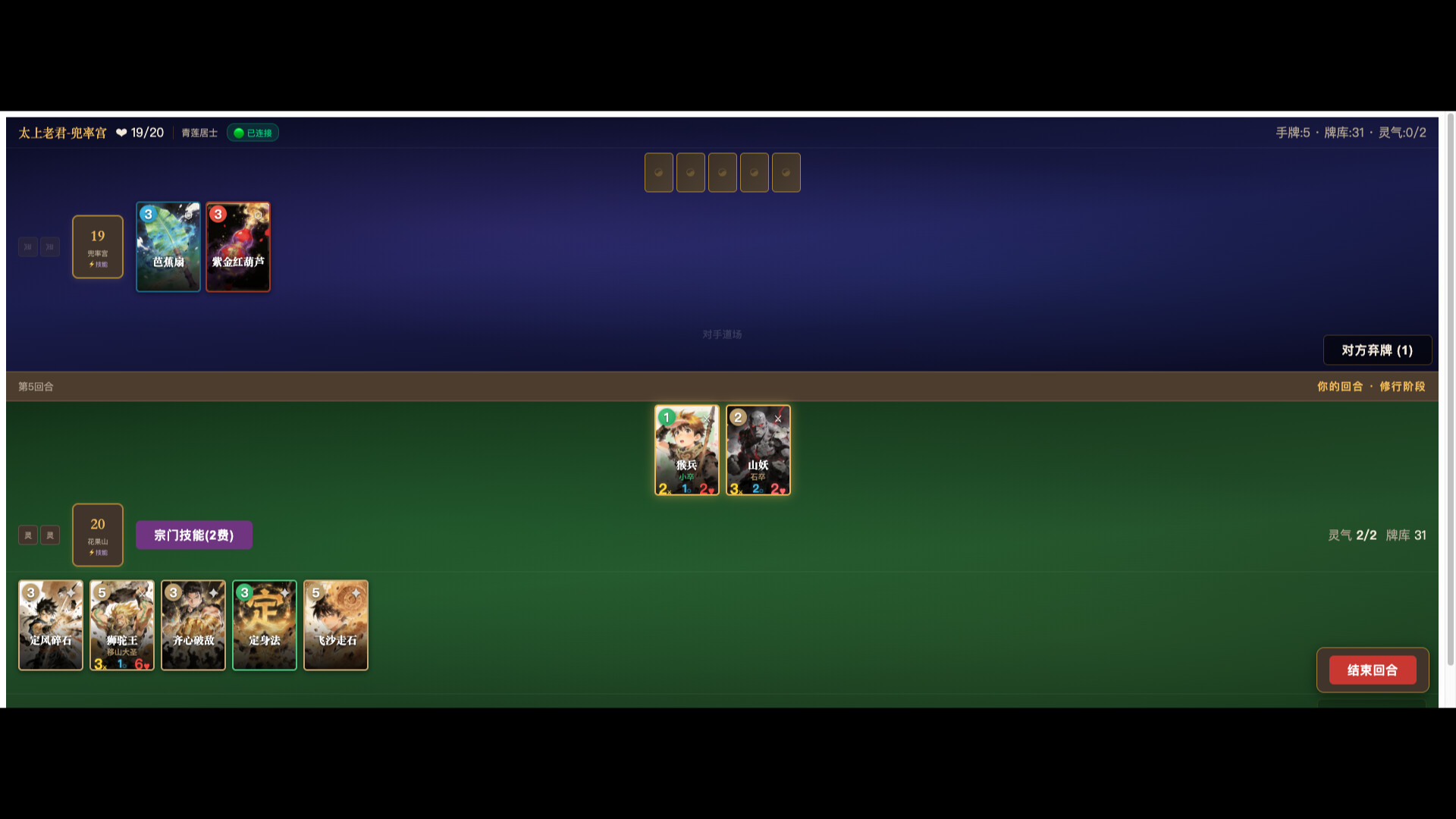 🌿 Flower Fruit Mountain – A wood and earth faction built around aggressive Disciple swarms and evolution chains. Summon monkey warriors and ascend them into legends.