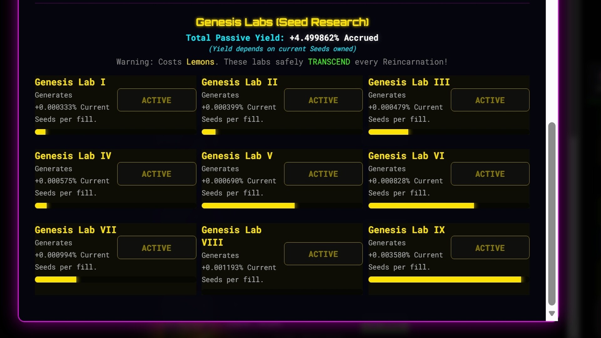 The Massive "Orchard Manual": With an economy this deep, we wouldn't leave you stranded! Consult the wildly extensive in-game Orchard Manual—a massively detailed, numbered, multi-chapter guide filled with lore, secrets, and mechanical explanations to help you master every system, from the humblest seeds to the Singularity.
