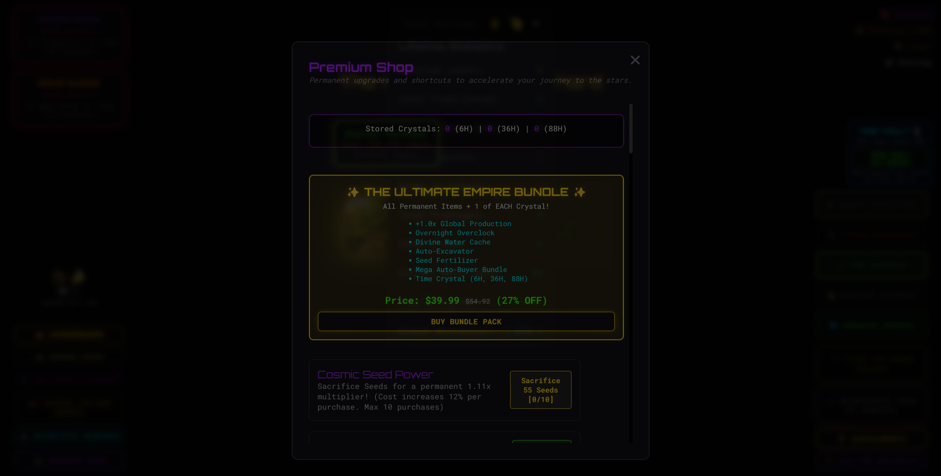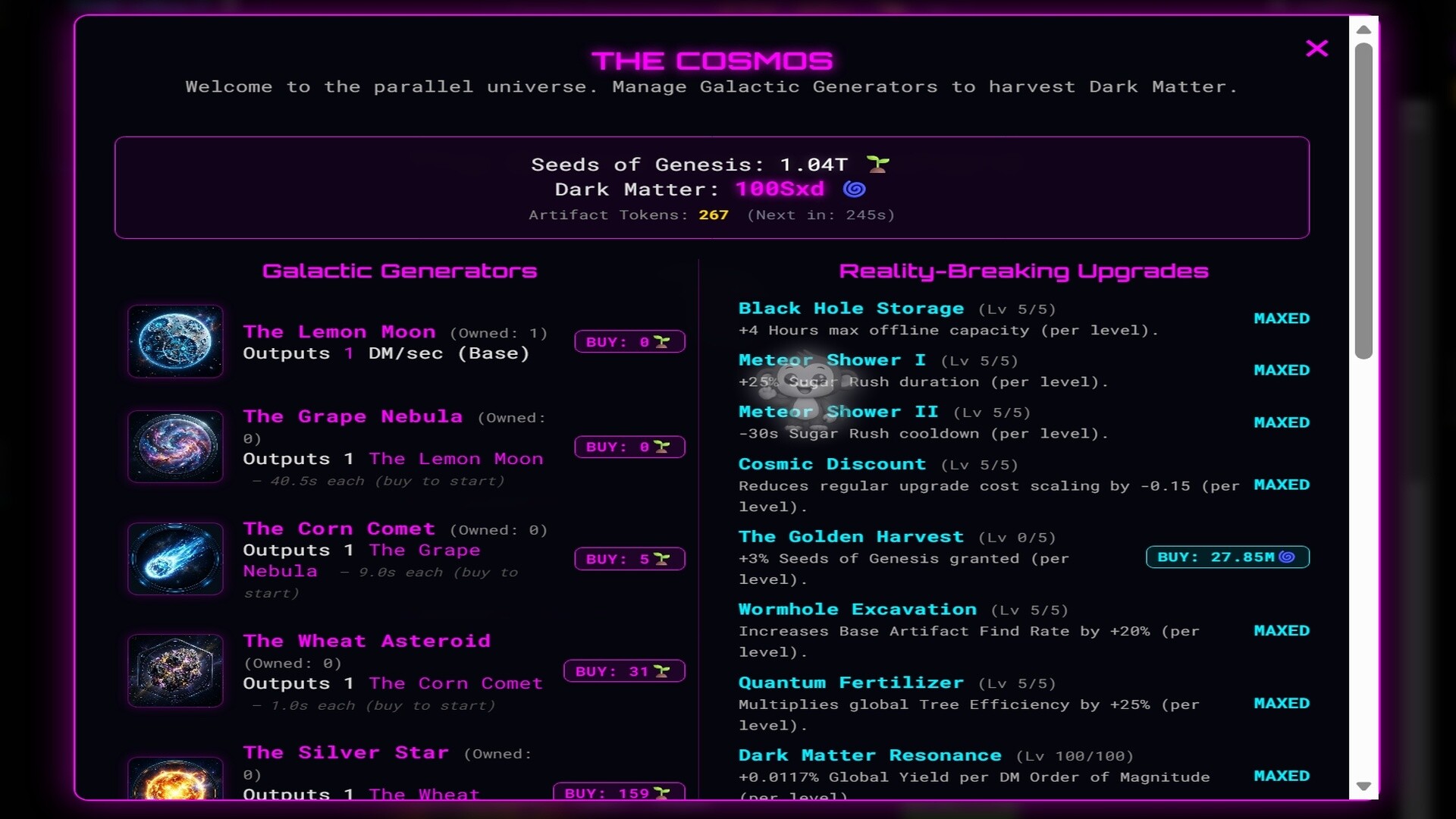 Refined Artifact System: Dig up and collect dozens of unique artifacts—like the Glowing Geode or the Creator's Hand—that fundamentally warp your game's physics and exponentially boost your production!