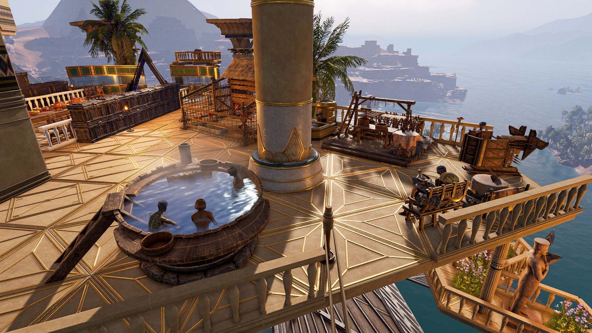 모든 선박은 커스터마이징이 가능합니다. 족장님은 비행선에 소형 반중력 엔진을 설치해 하늘을 날거나, 소형 모래썰매를 설치해 사막을 자유롭게 누빌 수 있습니다. 또한, 비행선에 조종대, 사다리, 돛 등 다양한 부품을 장착시킬 수 있으며, 심지어 발리스타, 함포를 직접 제작하여, 본인의 선박을 이동식 무장 요새로 탈바꿈시킬 수 있습니다!