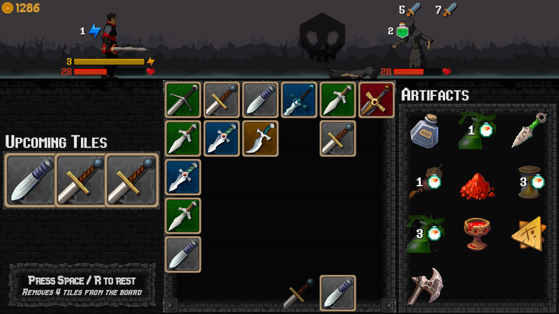 As new tiles are unlocked, you can start to mix and match between any pair of tiles that you have acces to. You won’t have much choice when starting out, but that will quickly change for the better as you explore the world and start leveling up. If you’ve obtained the proper artifacts, you can even go for a purely offensive or defensive strategy. Just be sure that your strategy is sound, or you’ll end up as worm food!