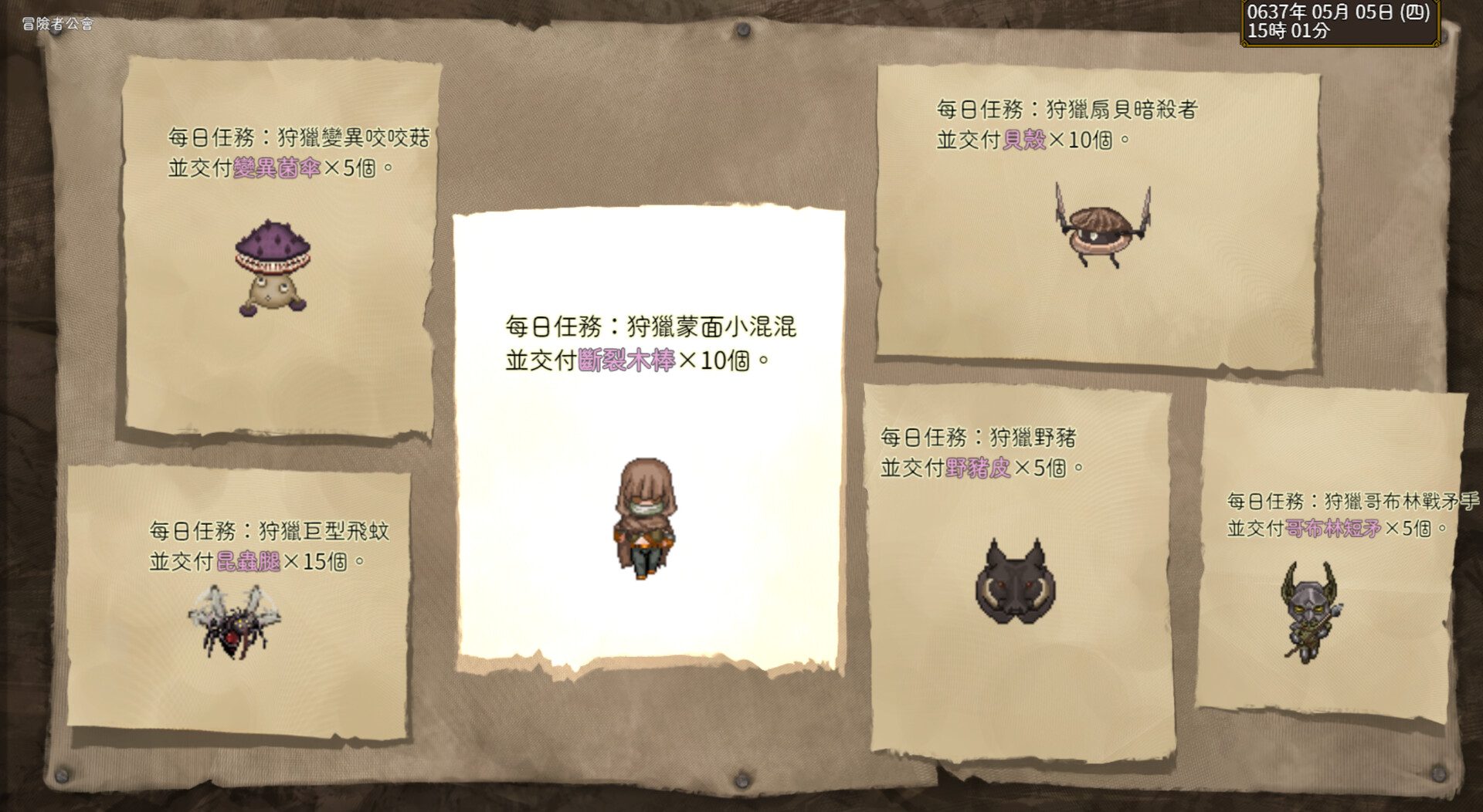 During the day, the player will focus on raising their level and income by accepting quests at the Adventurer's Inn, working part-time for merchants, and defeating monsters. Once night falls, dangerous mutated creatures will appear in the wild. The player can use a torch to drive away monsters in the darkness and avoid combat while executing missions, or choose to explore the night to acquire rare resources.
