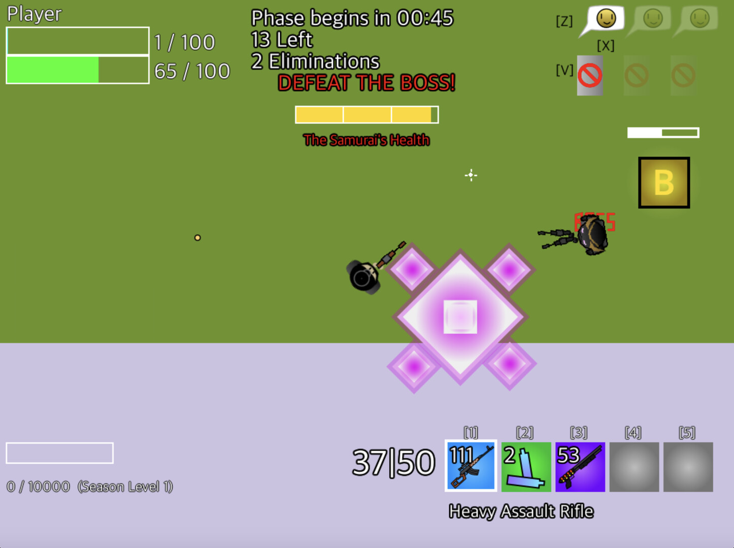 The GRIDROYALE map contains many interesting locations. From Dormant Dojo to Tactical Towers, each location offers a new experience. Additionally, a samurai boss will spawn somewhere randomly on the map! Defeat her to get a unique and extremely powerful weapon...