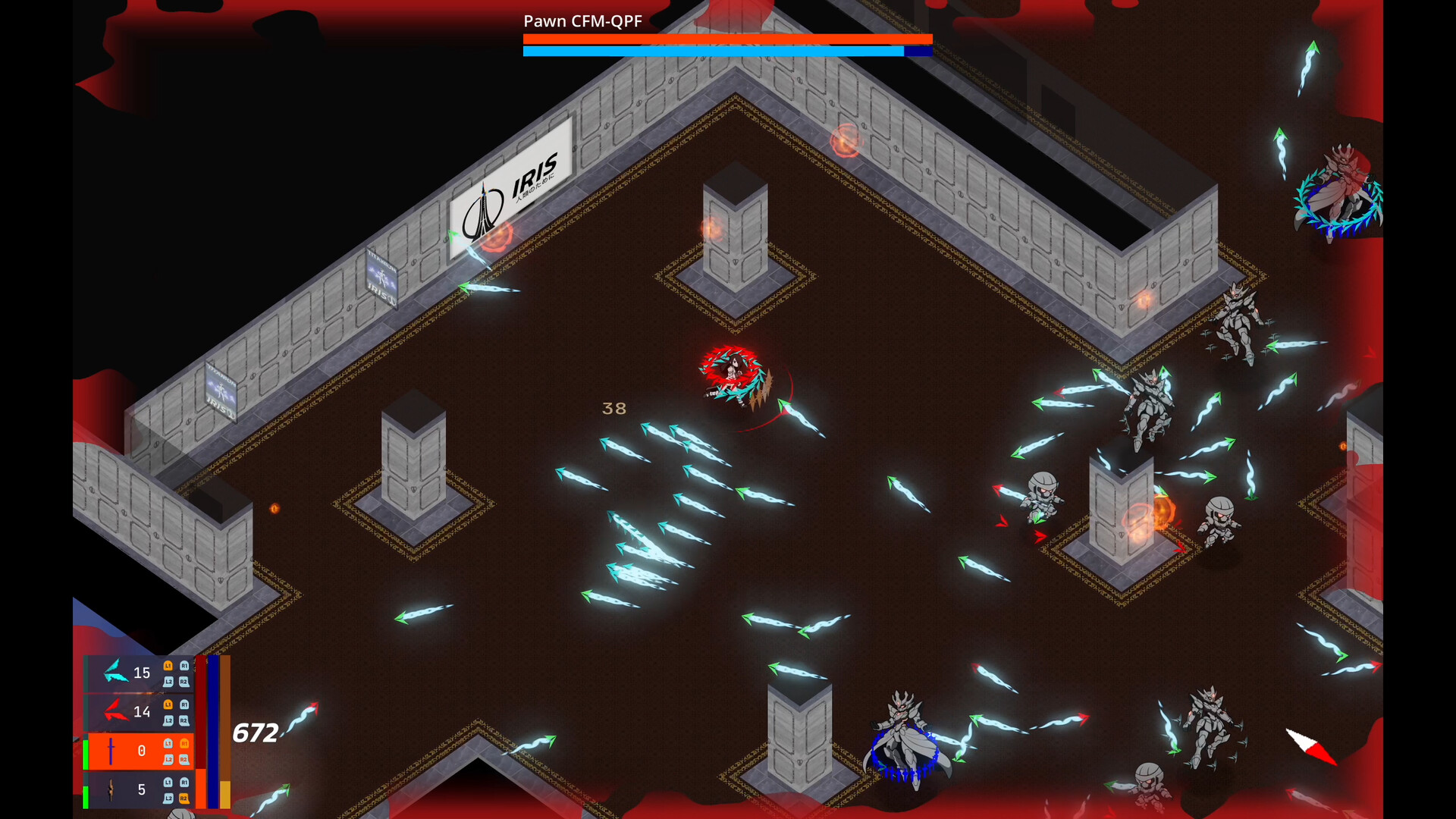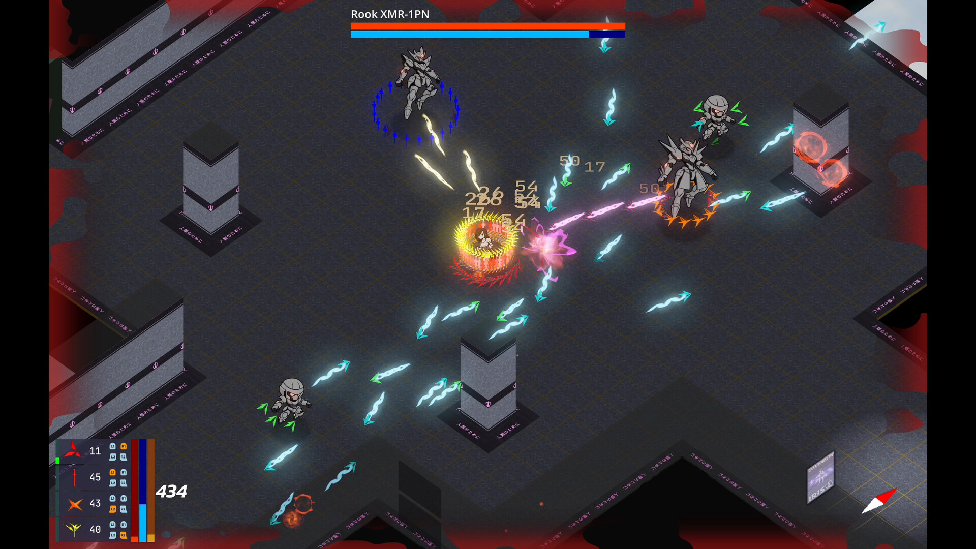 Your power comes from autonomous weapon units called Vektors: floating, destructible combat systems that must be built and then activated. Evolving through genetic stat growth, every Vektor is physically present in the arena, forming a visible combat formation around you.