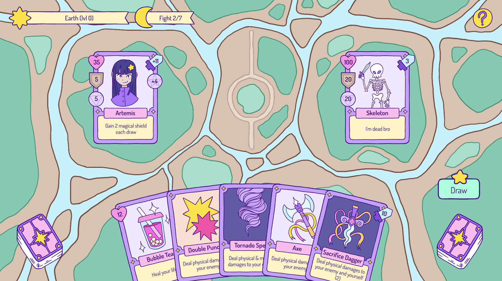 Stolen Heart is a Magical Girl Deck Builder where you choose your hero equipments and spells to beat the Dungeon. The Heart of Magic is guarded by the depths monsters. Become the strongest Magical Girl and follow the right path to retrieve it!