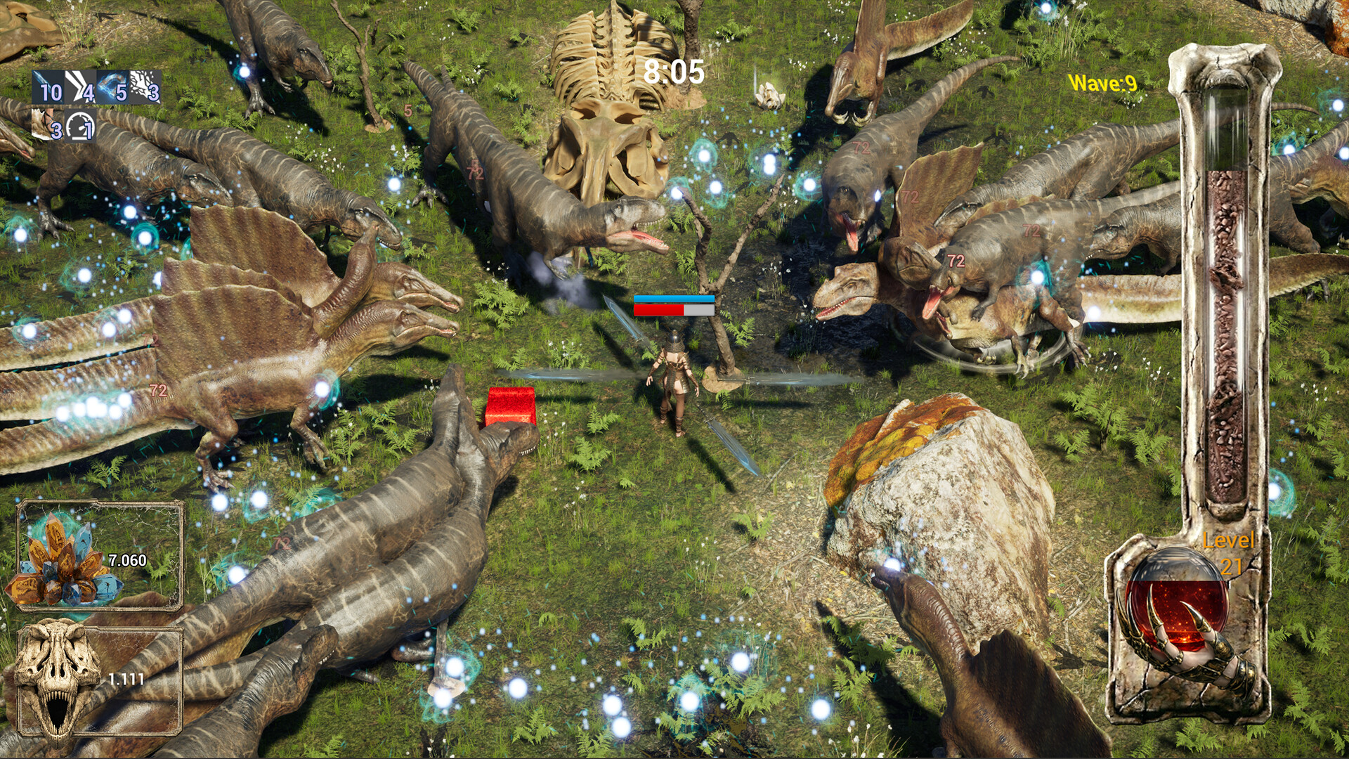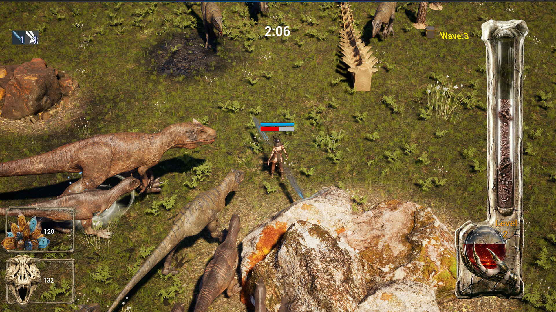 Chrono Vanguard: Primal Survival - Dinosaur는 스타일리시한 여성 영웅들이 치명적인 공룡의 거대한 파도에 맞서는 서바이벌 로그라이크입니다. 빠른 사냥꾼, 엘리트 포식자, 그리고 더욱 거대한 선사 시대의 위협에 맞서며 매 플레이마다 더욱 강해지세요.