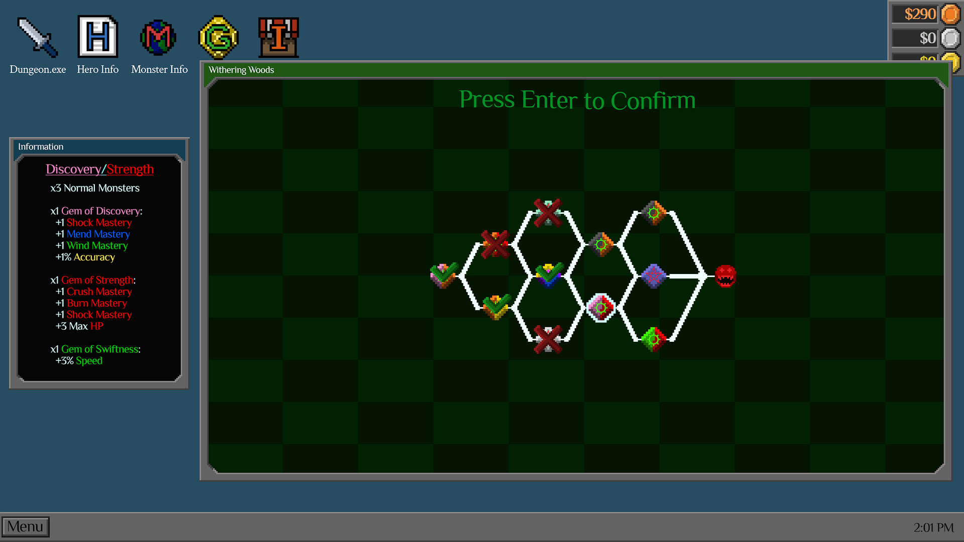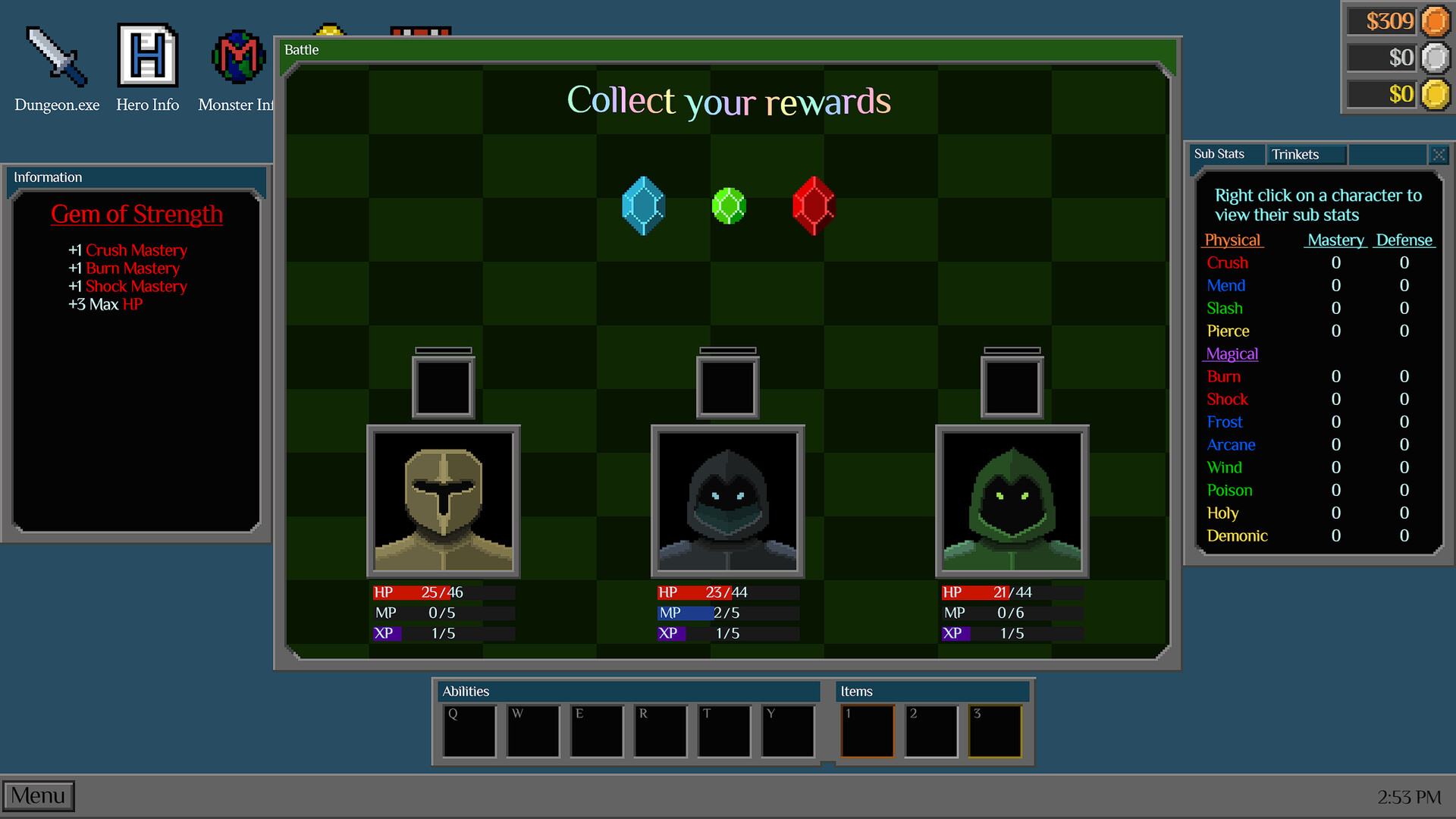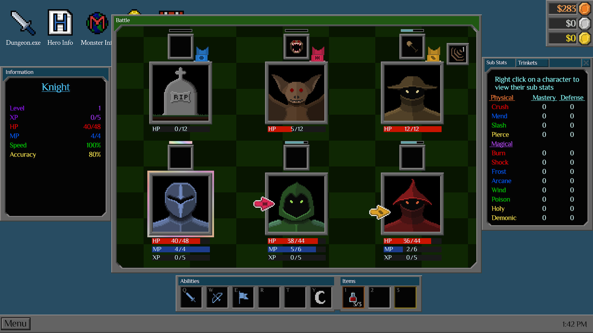 Fenestra is a semi turn-based roguelike where you form a party of 3 heroes and fight your way through a series of dungeons. The gameplay combines mechanics from classic turn based RPG's with elements from modern roguelikes. There is very light meta progress, but for the most part you restart upon death.