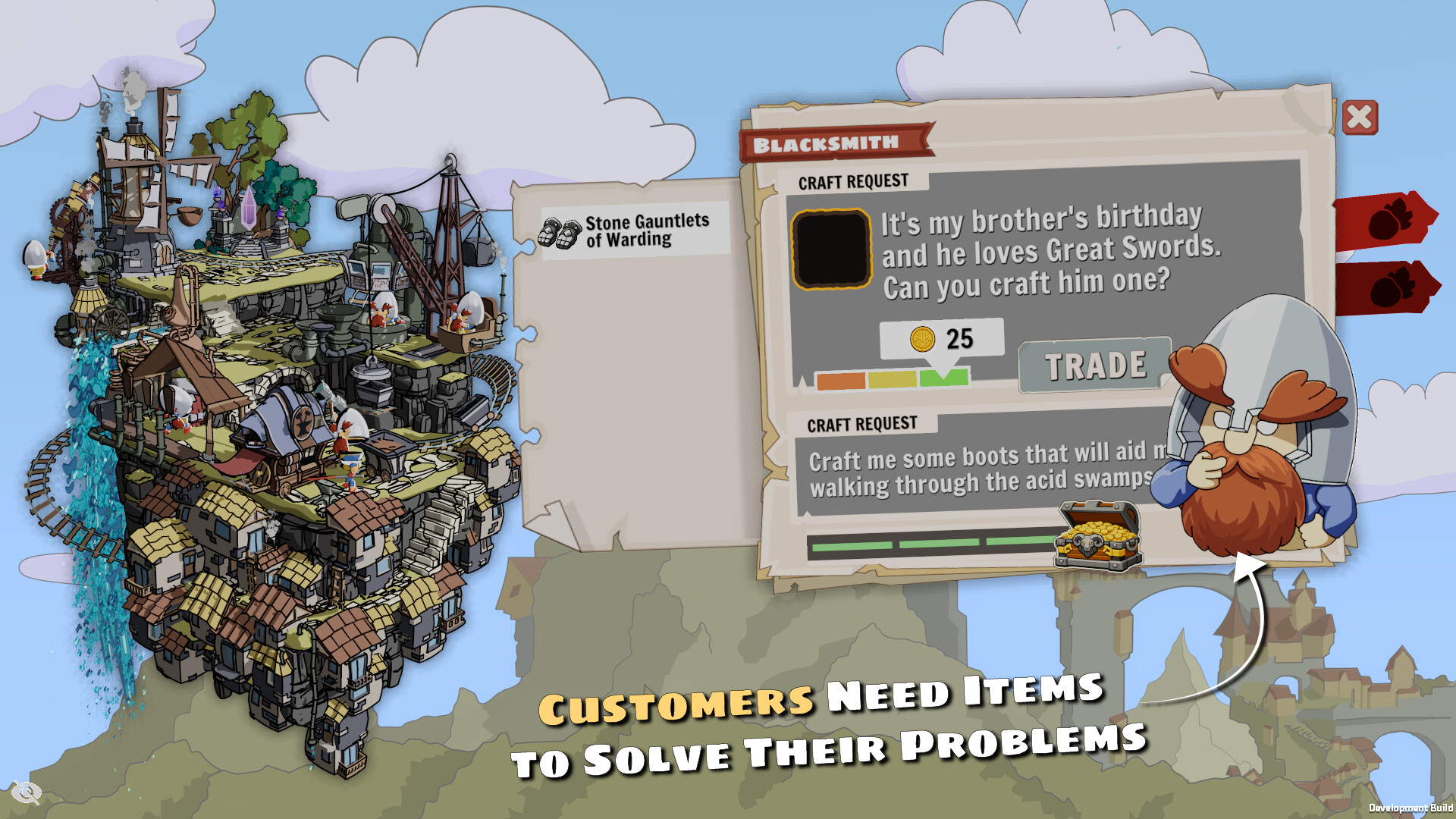 Forge minerals into rare and powerful gear. Travellers will come from near and far for your wears and will pay a pretty penny for them. Experiment with different combinations to discover all the weapons and armour of Dwarfspire.