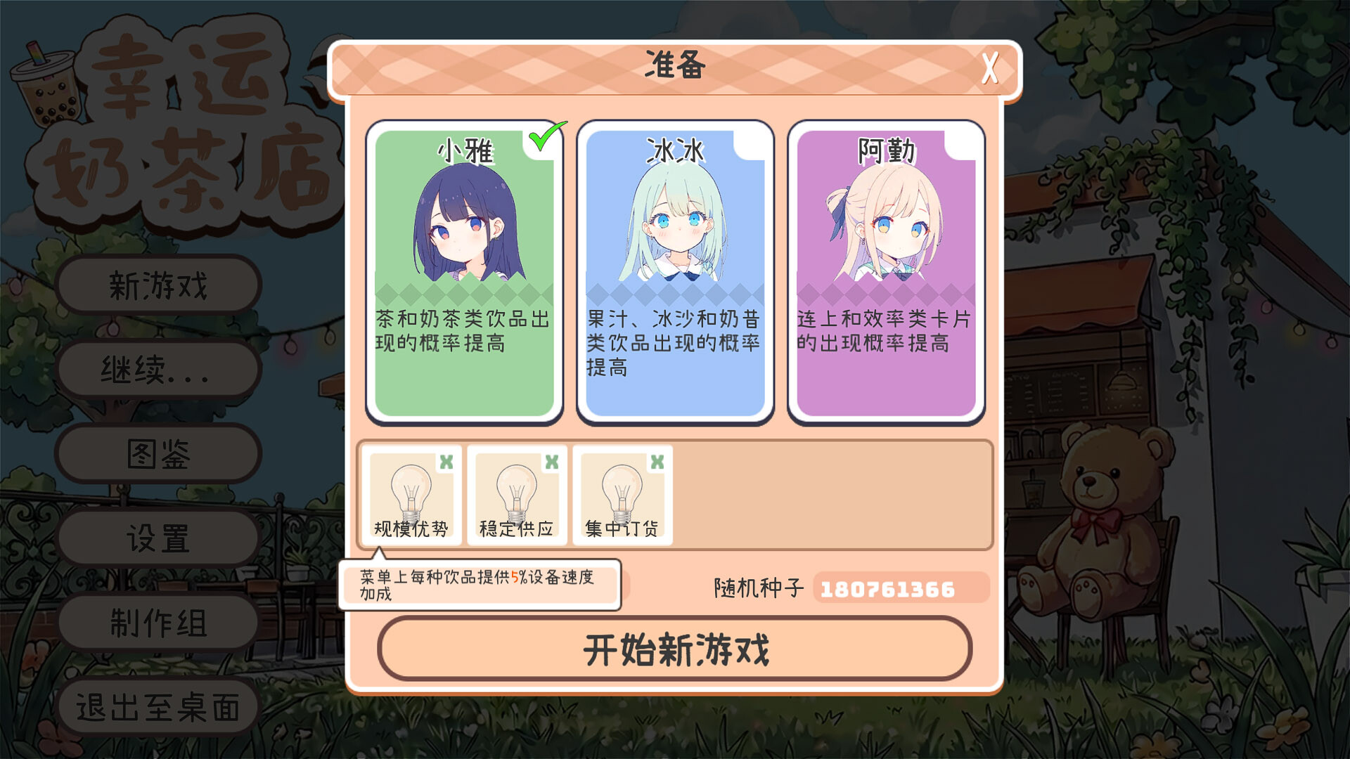 The game includes multiple preset starting characters, each with their own specialty drinks and unique upgrade card pools. Combined with various souvenirs, players can easily experiment with different playstyles and builds.
