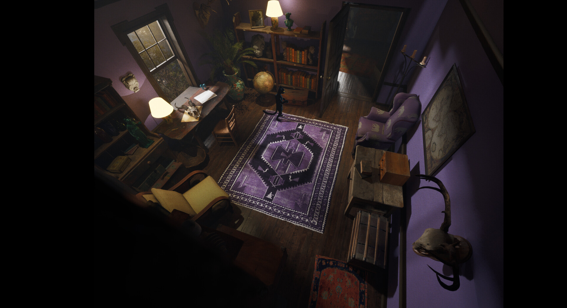 The house is designed as an interconnected space that evolves as you play. Hidden passages open, shortcuts emerge, and distant areas link together, transforming the mansion from a maze of isolated rooms into a fully traversable environment. Progress is not about gaining power, but about gaining access—reducing the barriers between you and the world.
