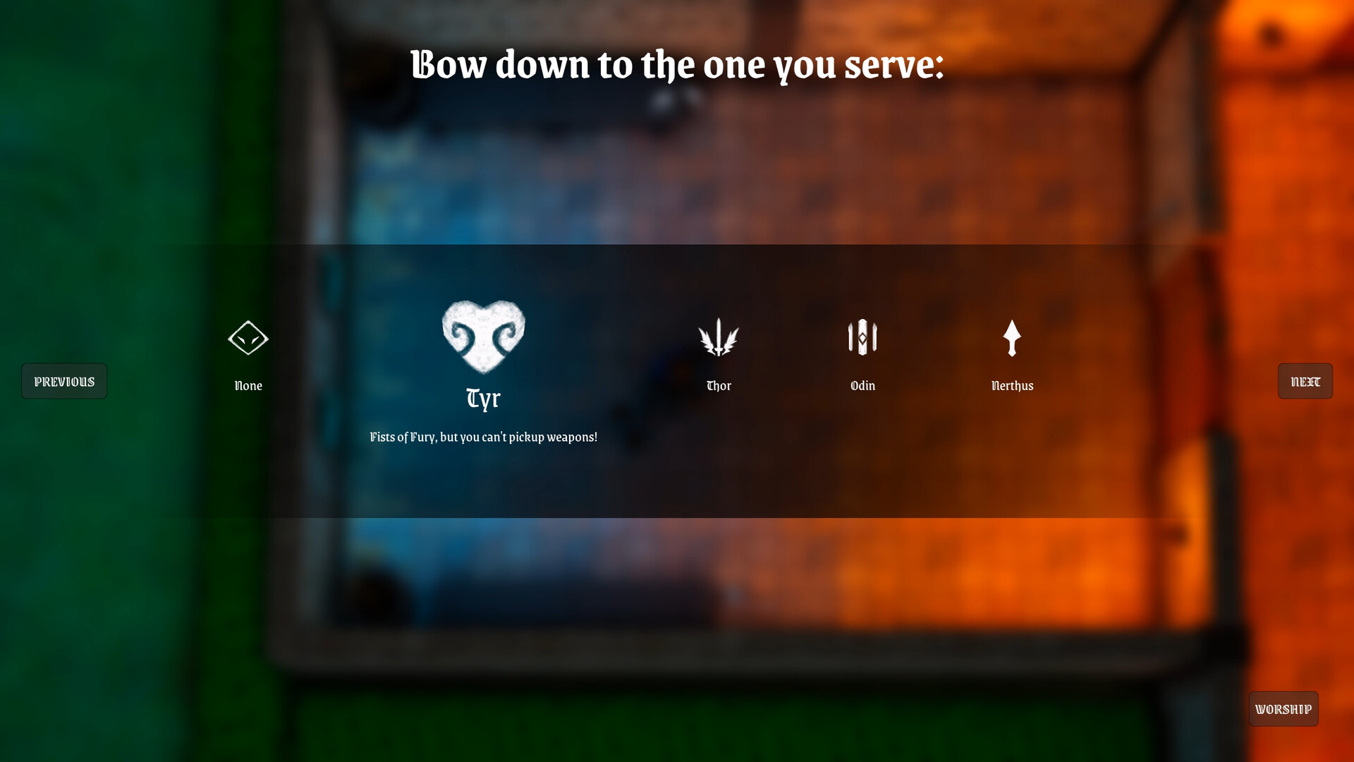 이교도 신들에게 기도하고 게임플레이를 바꾸는 축복을 받으세요. 토르의 망치를 휘두르거나 티르의 비인간적인 힘을 빌려 맨손으로 적들을 반으로 찢으세요.