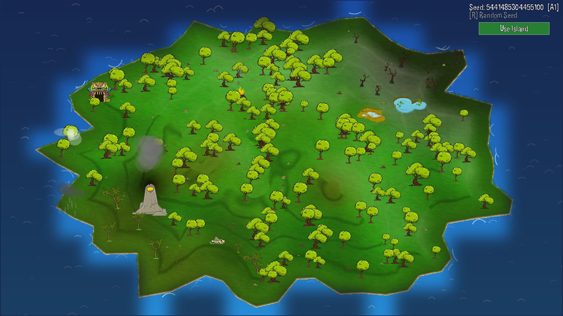 The game's story mode revolves around a mysterious island. The island is randomly generated to allow unique play in every run. An option to set a seed manually is available but it would disqualify the play through from unlocking any achievement.