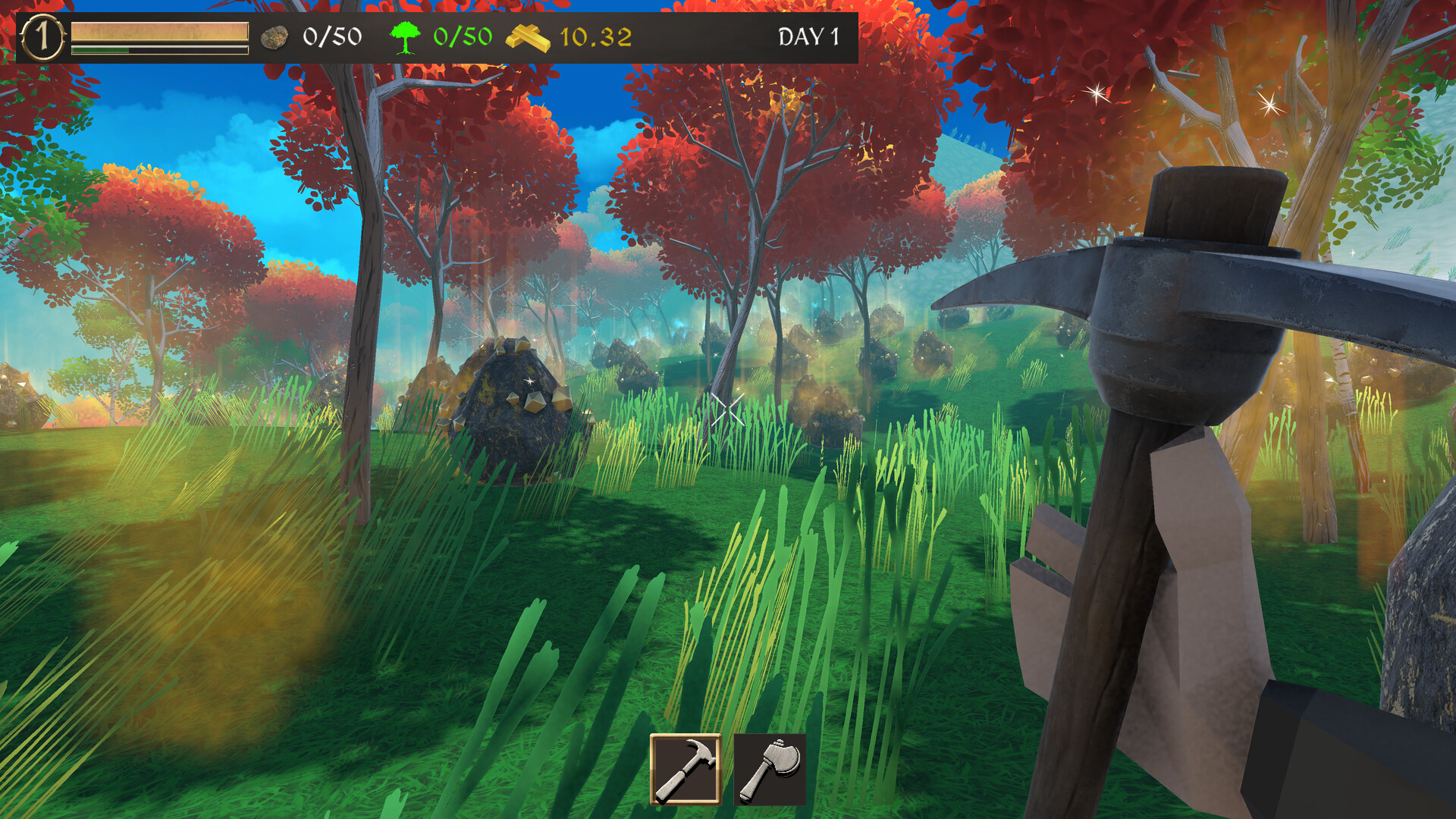 The current Early Access version features the core mining and gathering loop. Players can explore different biomes with different ores, use 5 different tiers of pickaxes and experience the full Day/Night cycle. Cut trees, Ore Mines, upgrade the character, Use shop to buy new items to help you on your journey. More enemies and features are planned to come.