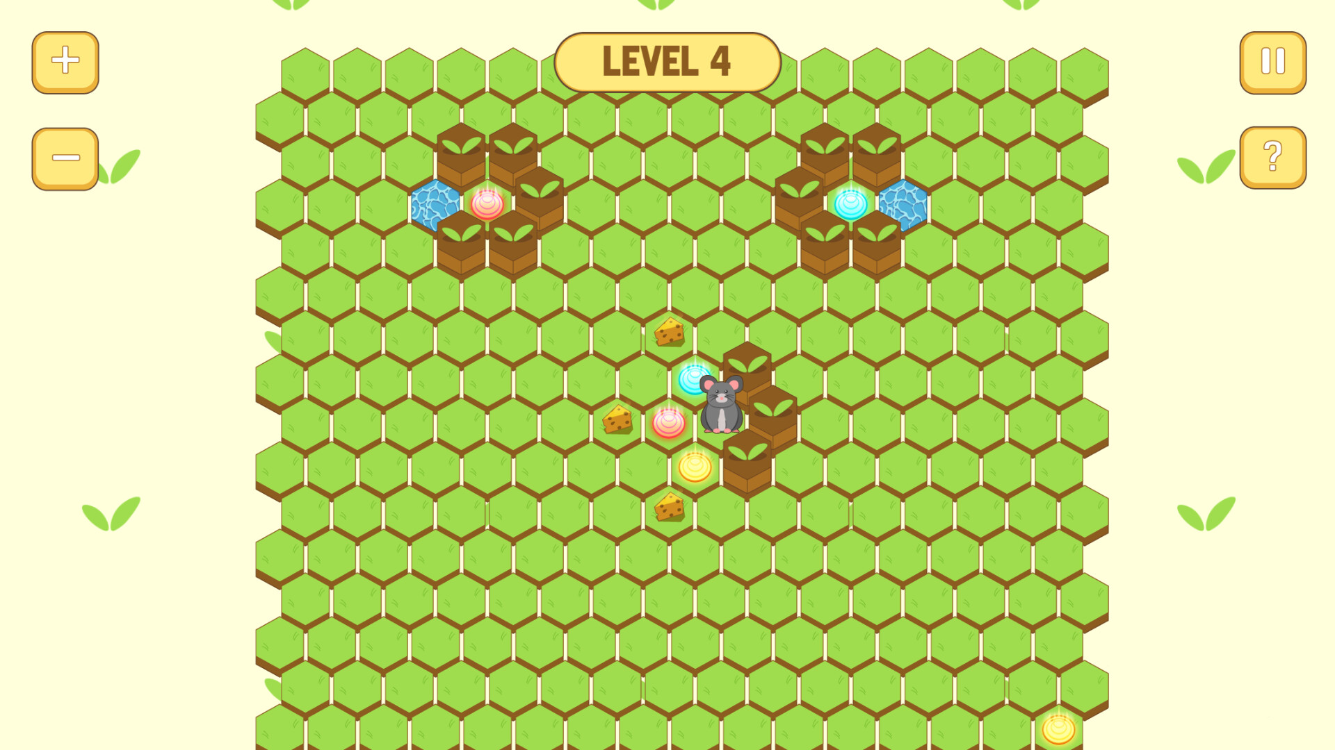 순간이동 타일은 레벨을 더 어렵게 만들 수 있습니다. 순간이동 타일은 마우스를 같은 색깔의 순간이동 타일로 이동시킵니다.