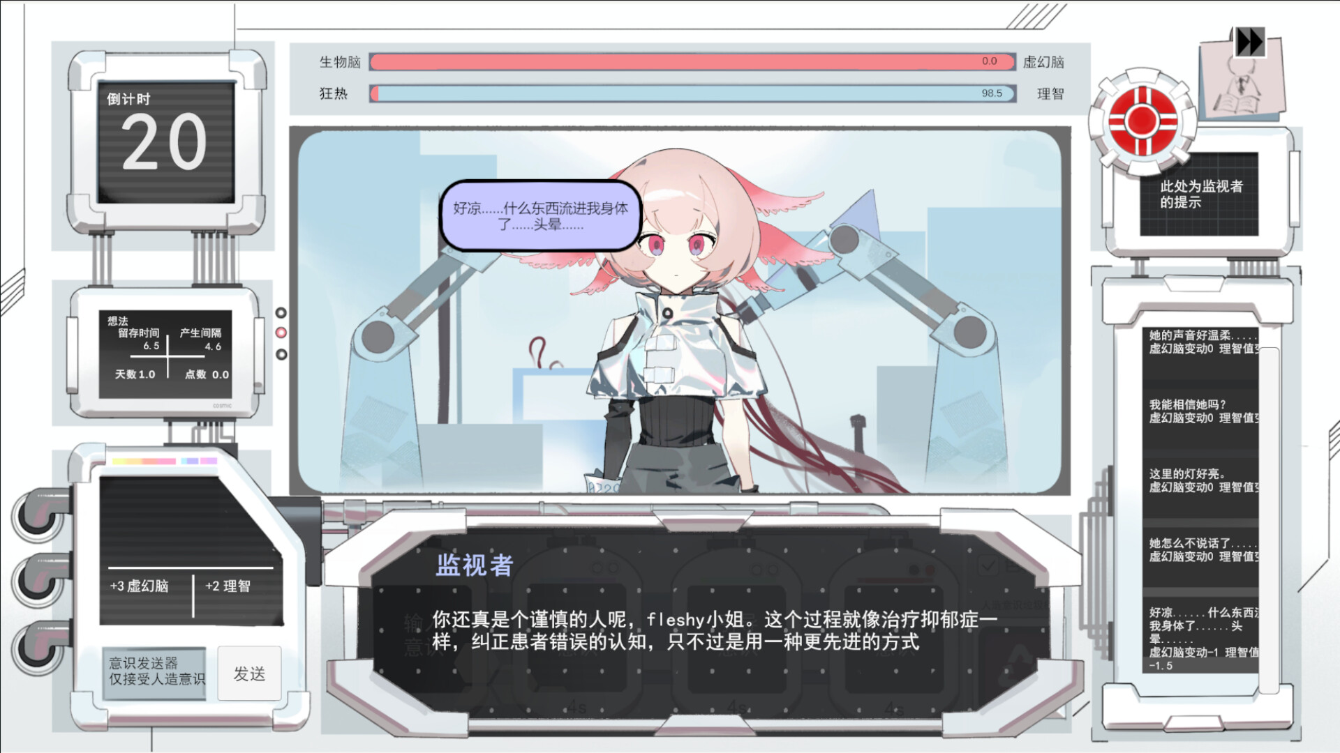 游戏采用精致的2D美术风格,将干净整洁的实验室和各怀心思的少女们完美结合。内含二十余首原创合成器纯音乐,包括一首人声演唱的原创歌曲。