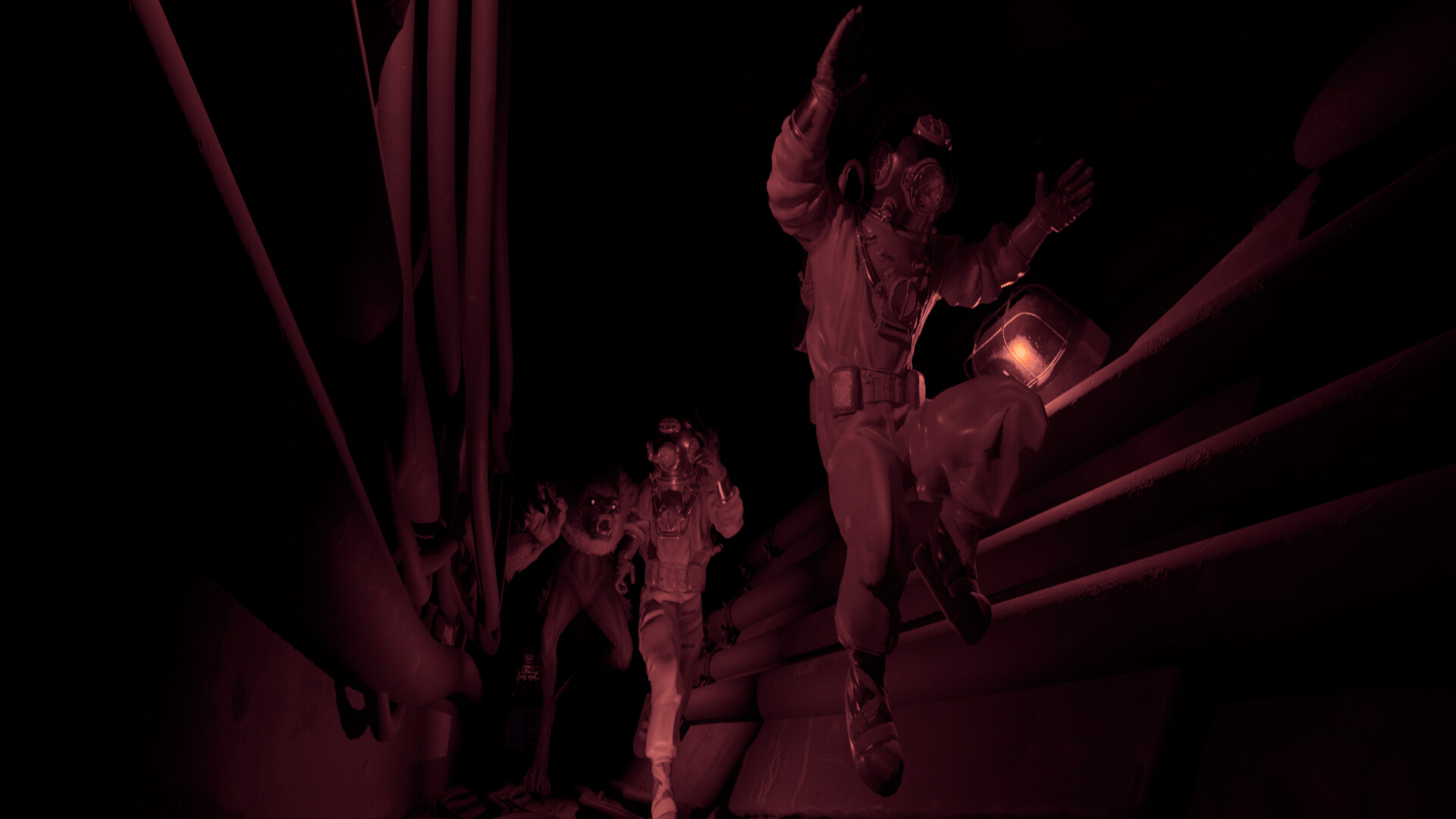 어두운 통로를 괴물이 배회하고 있습니다.