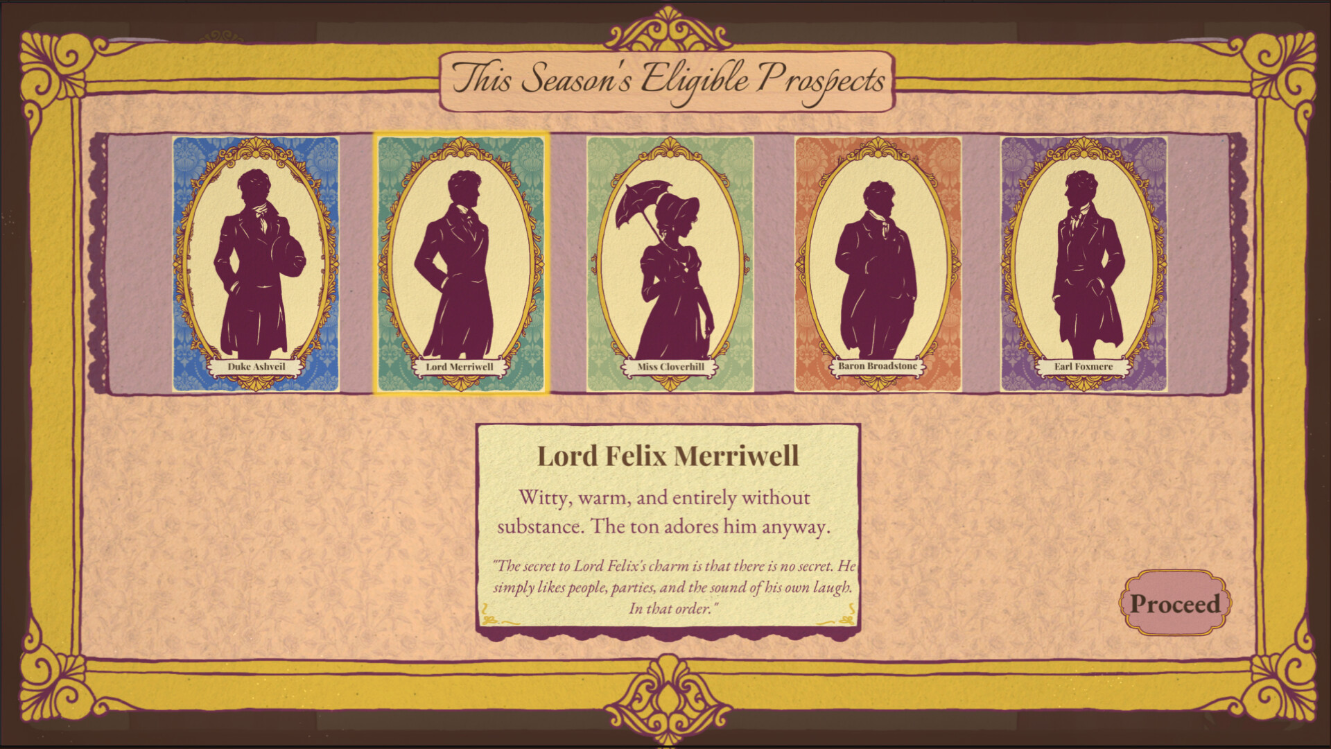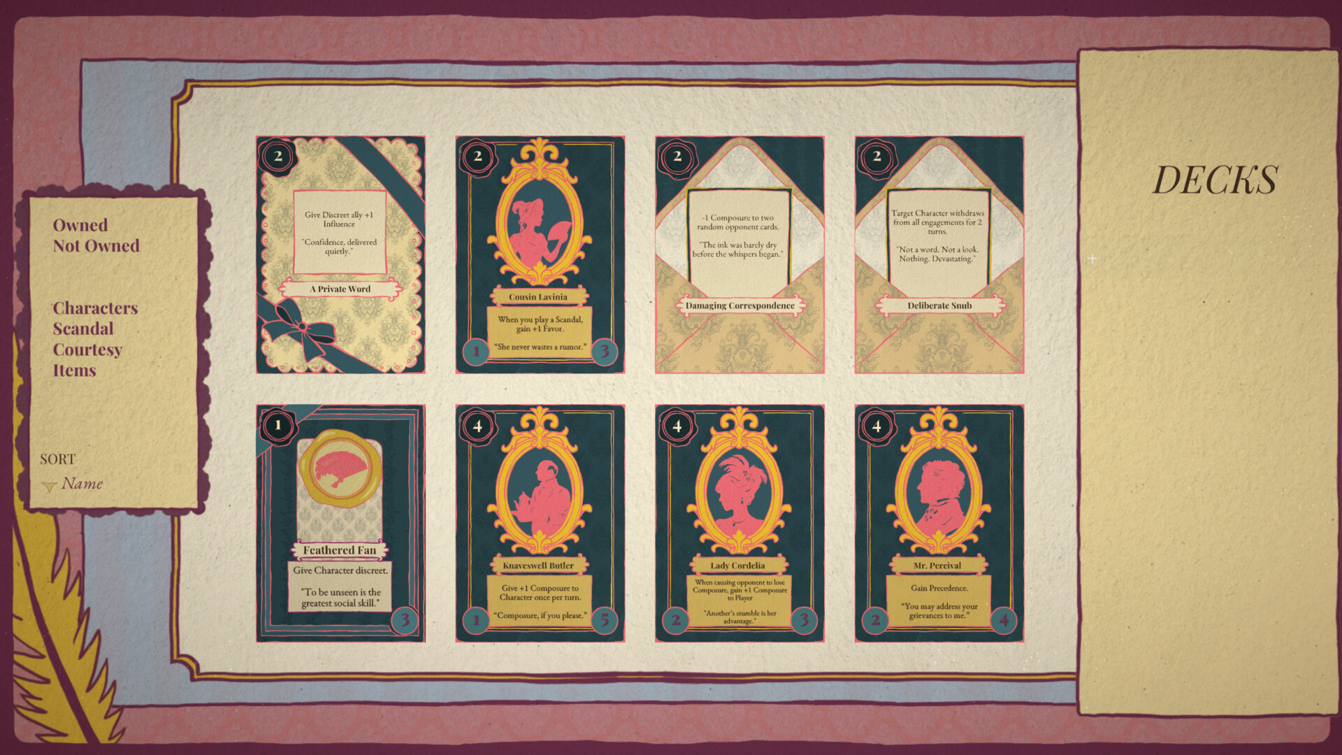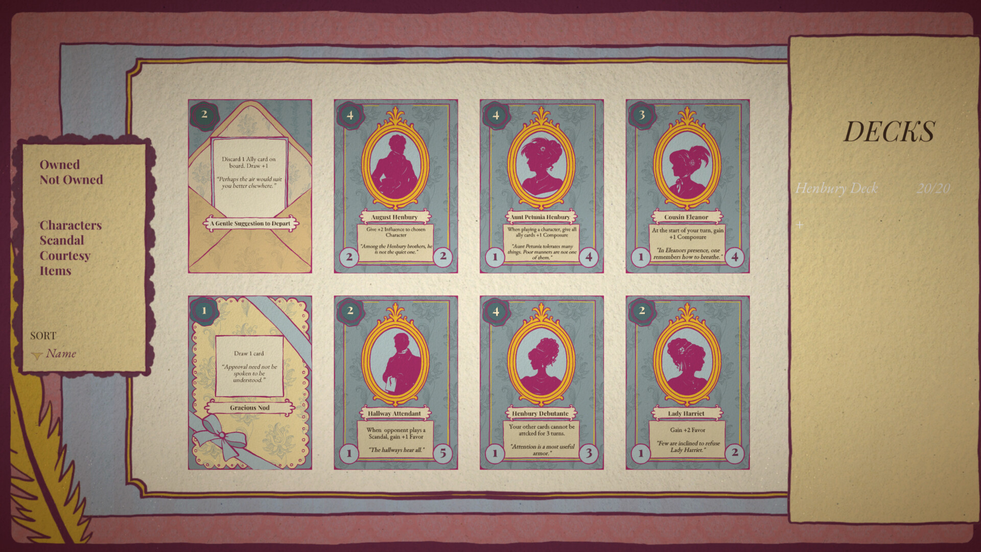Of Grace & Gambit is being developed by a solo developer with a love for Regency fiction, card games, and characters with opinions. It is a work in progress and your interest means a ...ton. Wishlist to follow development and be notified when the season begins.