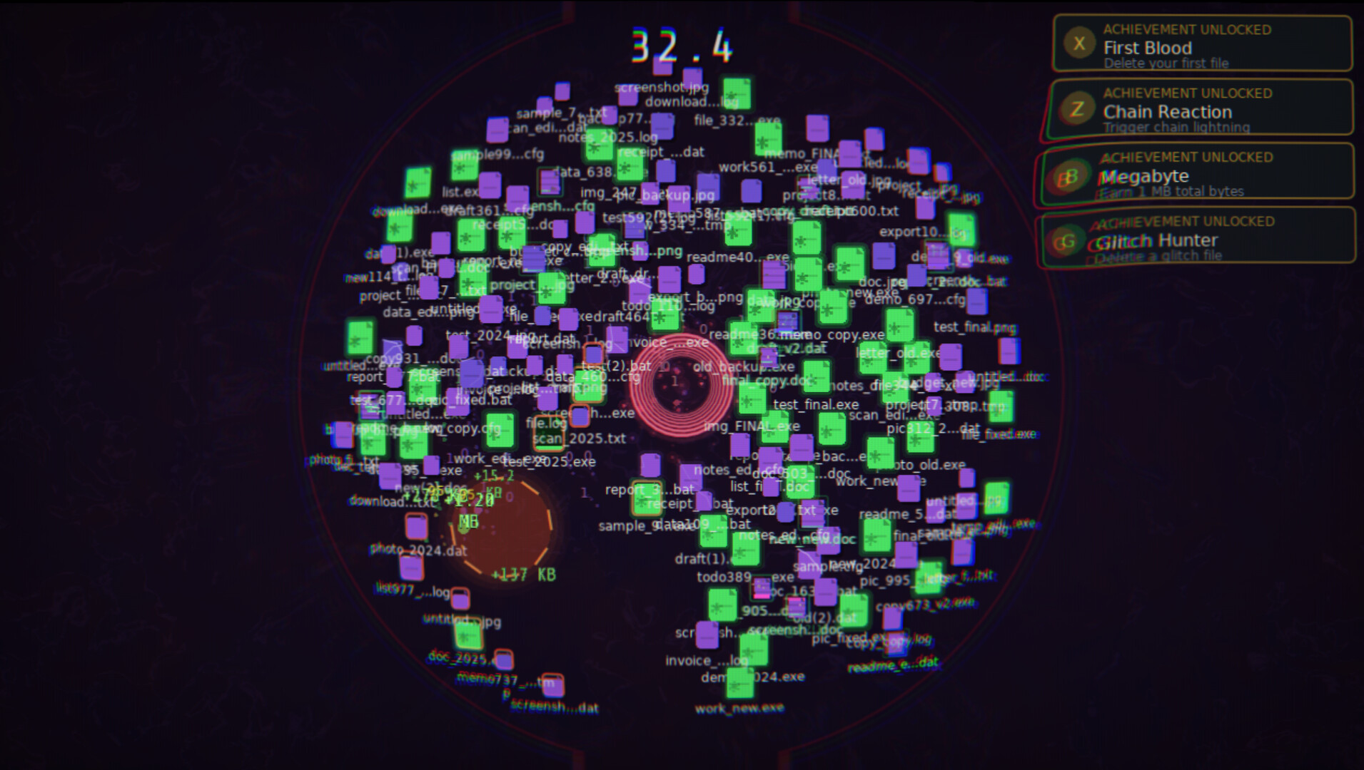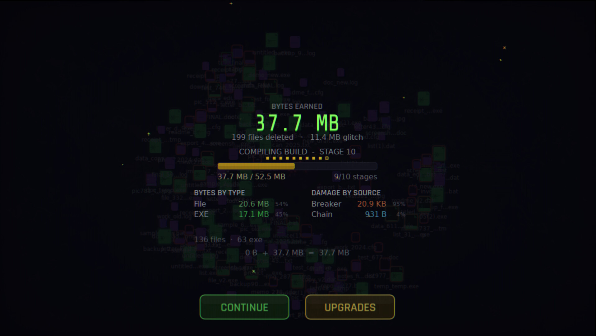 The more upgrades you get the different types of files you unlock to destroy which will earn you more bytes.