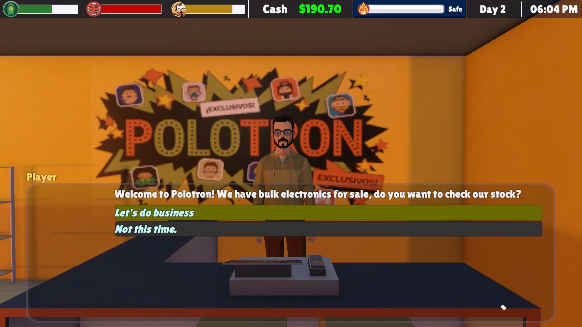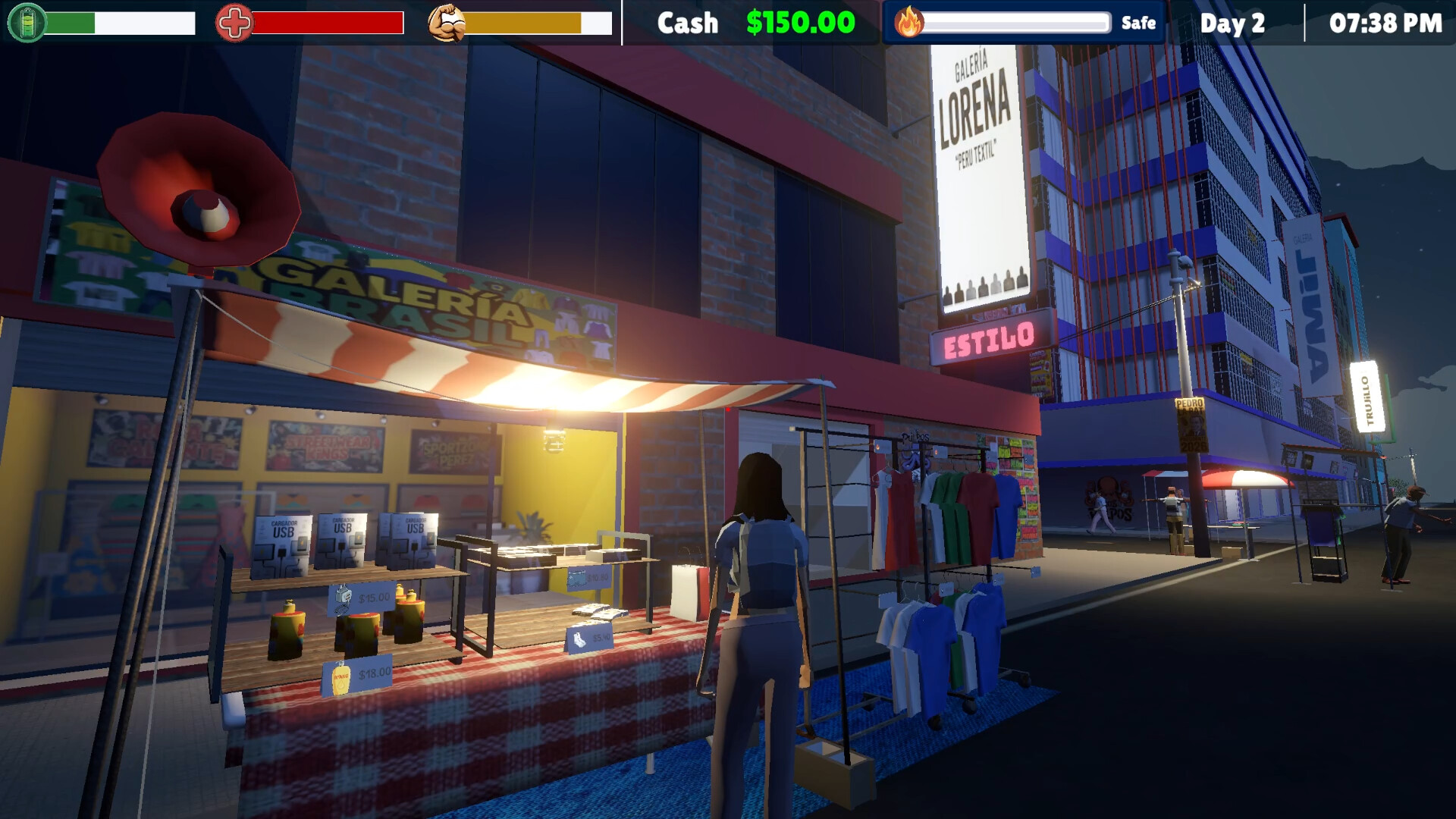 The streets of Gamarra are ruled by Los Pulpos gang—pay up or face the consequences. Corrupt police are always on the lookout for vendors to extort or raid. Meet Gamarra's colorful characters, uncover their stories, and manage your health, stamina, and resilience to survive the chaos while building your business.