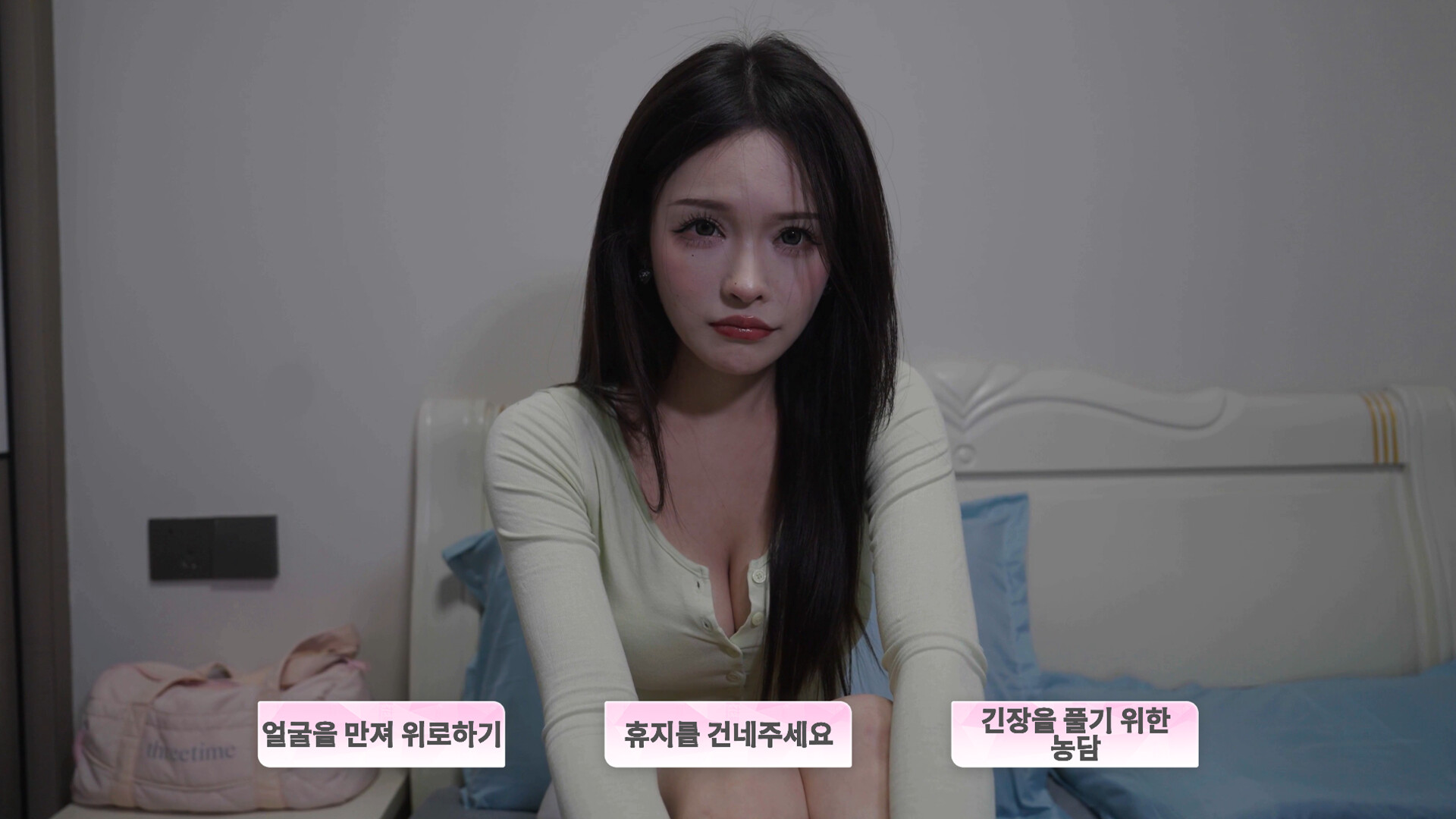 저희는 전문 영화 감독들과 협력하여 최고 수준의 영화적 촬영 및 제작 기준을 적용한 이 작품을 만들었습니다. 모든 표정, 움직임, 그리고 상호작용적인 디테일 하나하나에 세심한 주의를 기울였으며, 초고화질 영상은 비교할 수 없는 시각적 경험을 선사하여 마치 꿈에 그리던 여인과 직접 대화를 나누는 듯한 생생한 느낌을 줍니다. 이 특별한 로맨틱 작품은 영화적 완성도와 고도의 상호작용 요소를 완벽하게 조화시켰습니다.