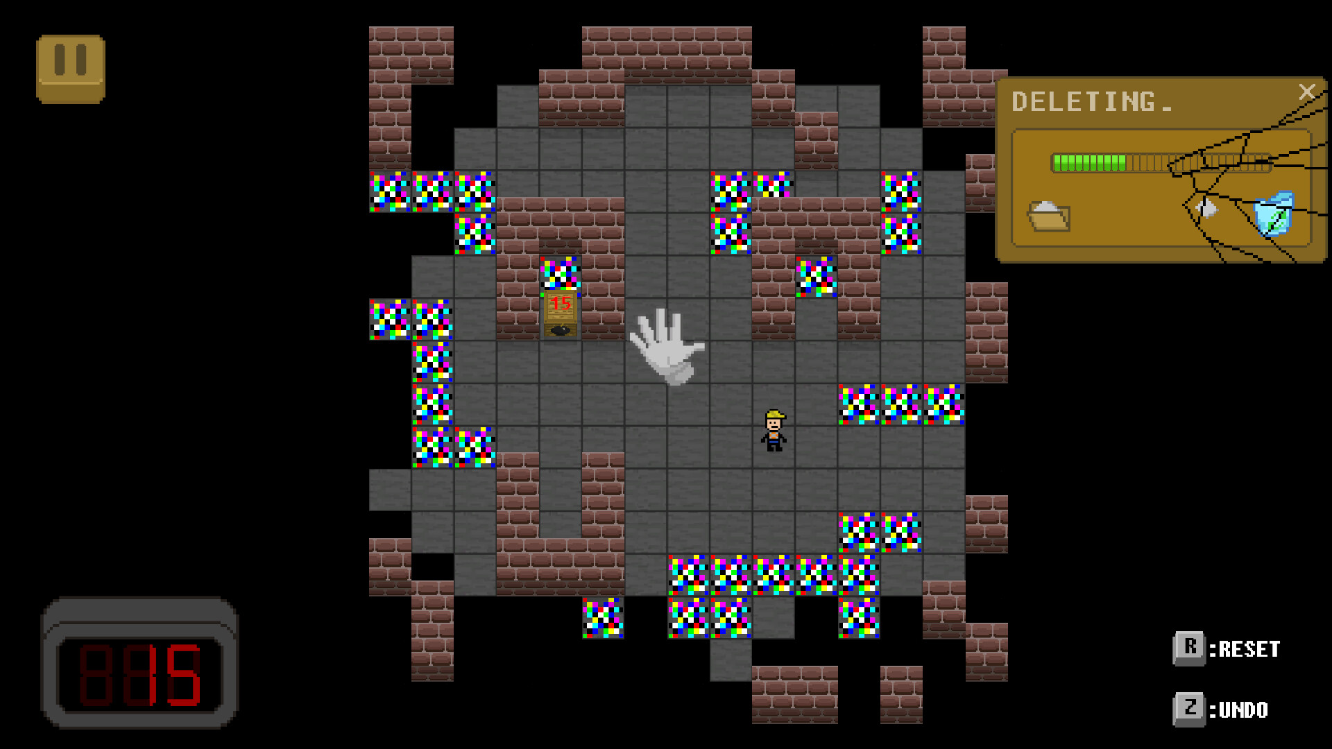 그런데 삭제의 영향으로, 버그가 발생한 타일이 맵 곳곳에 발생합니다. UnDo를 사용하면 일어나는 기묘한 버그를 이용해, 게임 마스터의 방해를 이겨내고 스테이지를 클리어해 삭제를 막아야 합니다!