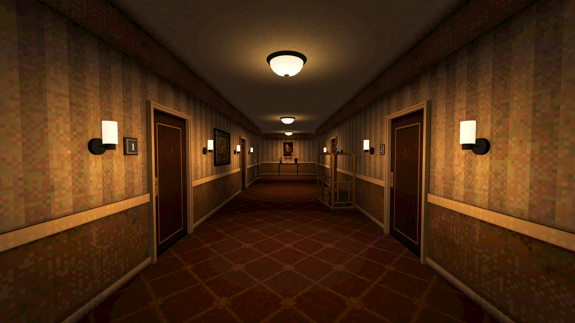 Beyond the hallway lie hidden spaces that reveal the nature of the hotel and some of its guests. There are no chases or death screens — only the hotel.