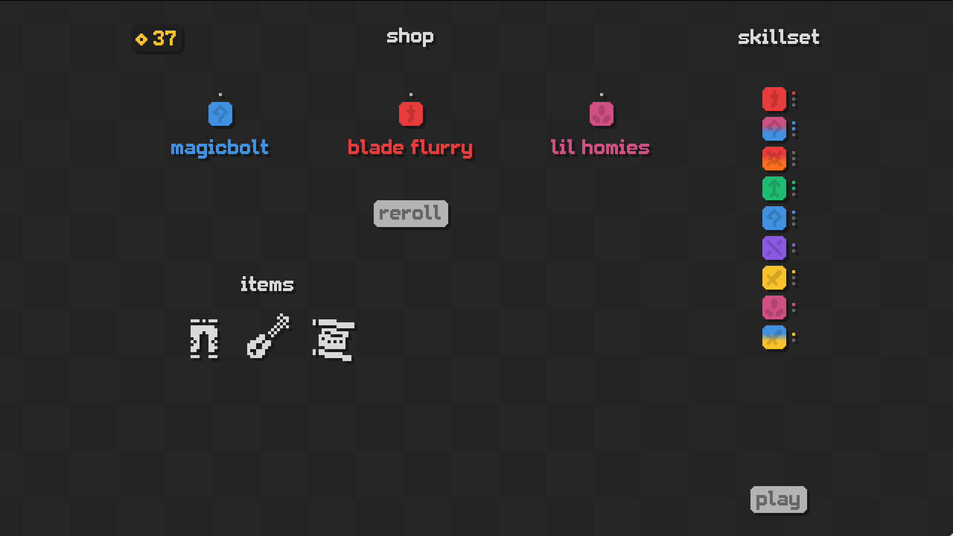 Buy/sell skills from the shop to build your ideal skillset