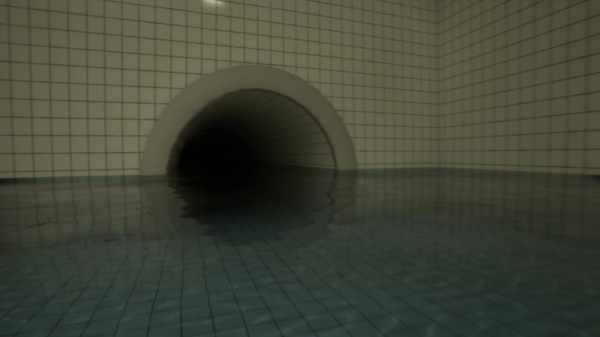 침수된 수영장 방으로 내려가 수면 아래에 무엇이 있는지 확인하세요.