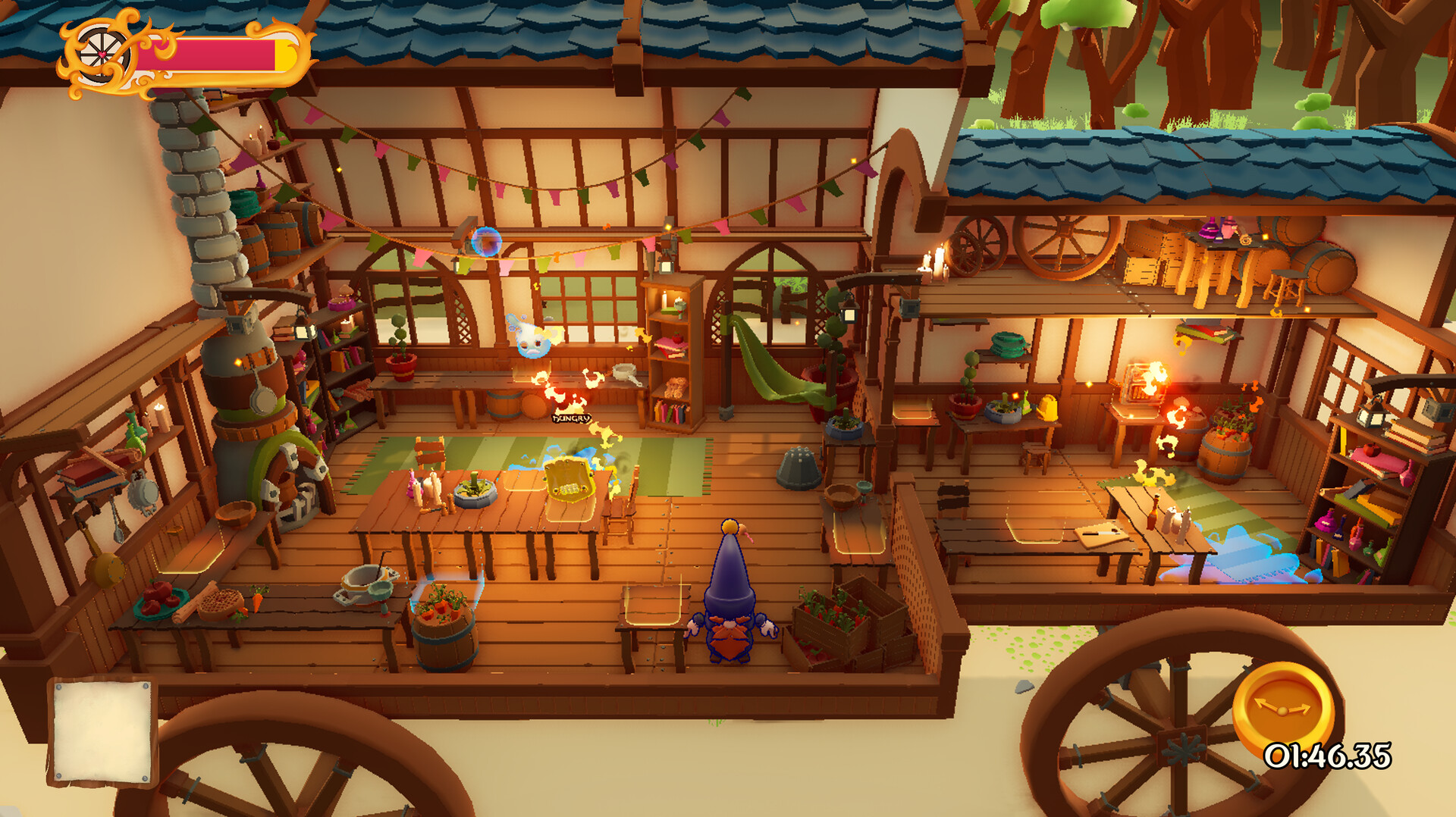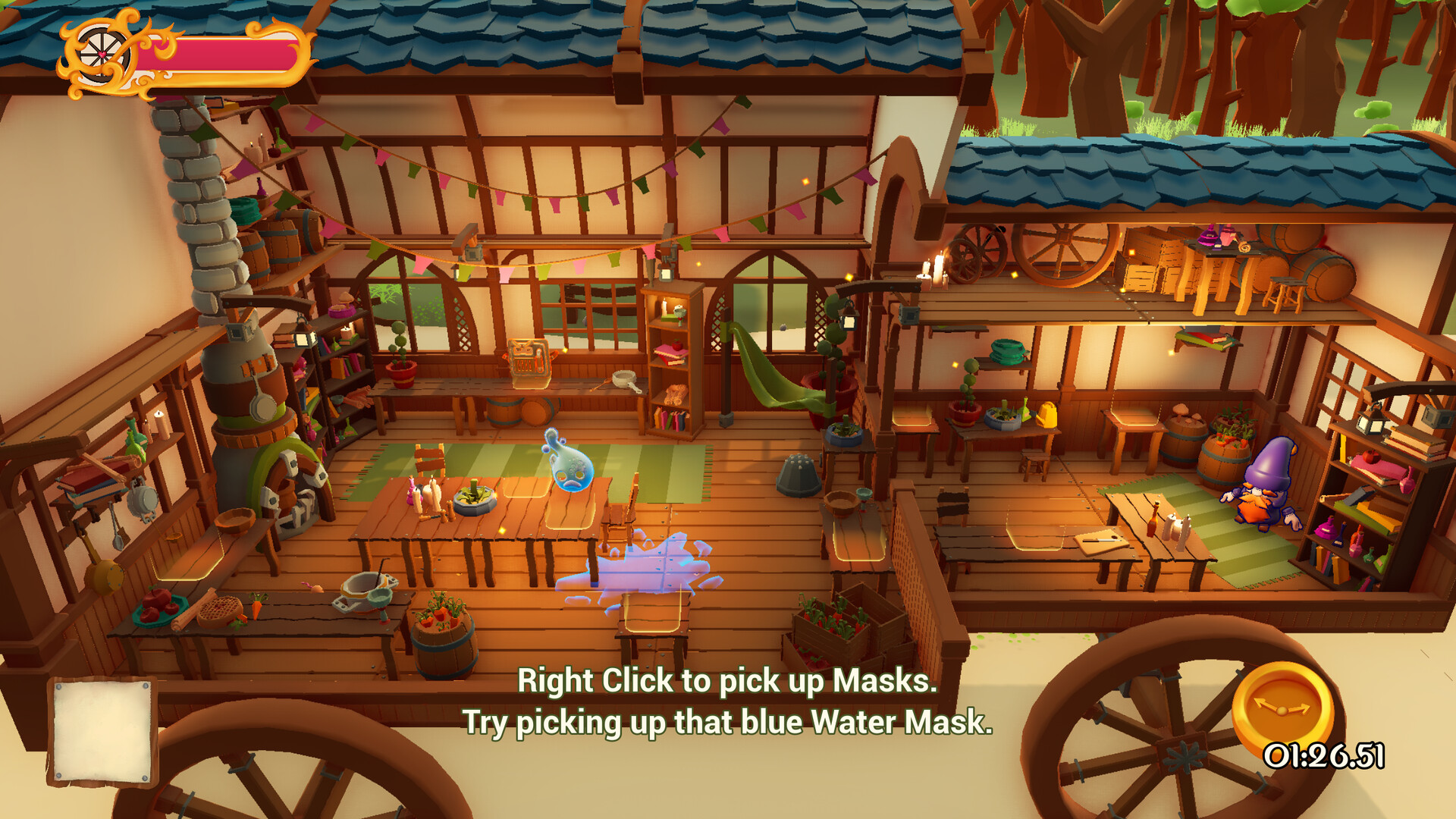 You play as Minkle, a magical mask merchant and help him arrive safely at his destination. His creations don't much like the road, so mayhem almost always ensues.
