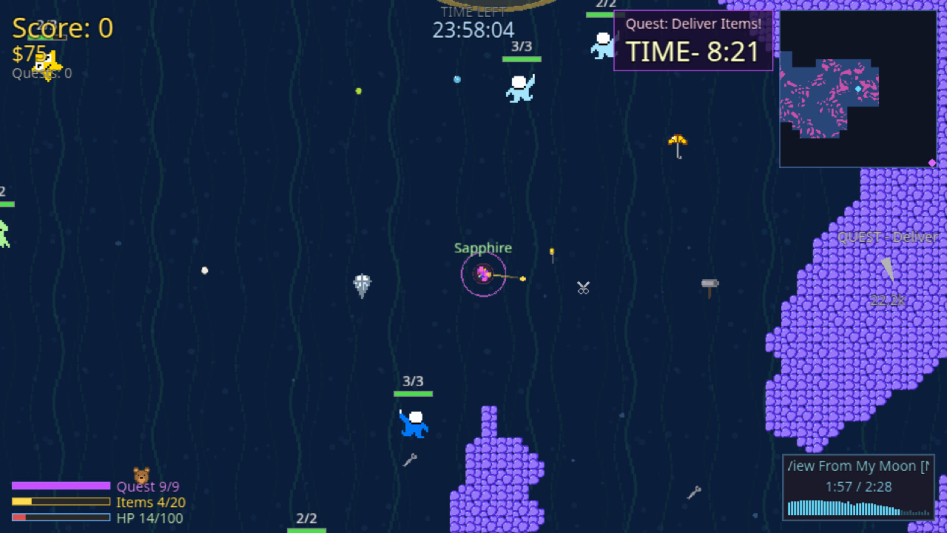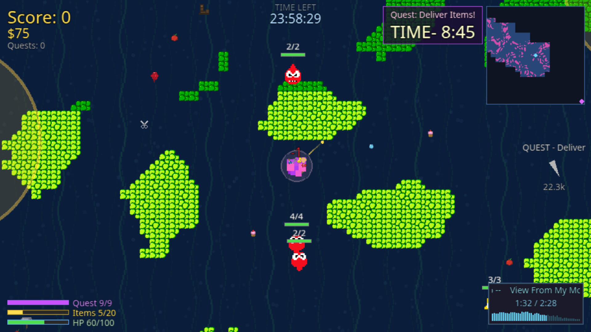 That is where you come in– a humble item-carrying bubble who is part of the DEEP SEA DELIVERY COMPANY. Be careful though, as the items you carry also double as your only means of offensive attack too. It’d be a shame to lose out on precious cargo requested by the people of the world…