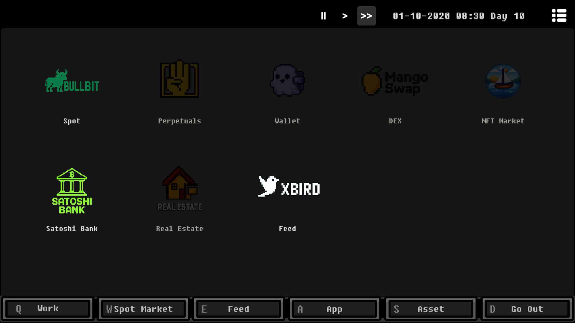 현물, 선물, 그리고 부동산: 처음엔 현물 거래로 시작하지만, 승진할수록 고수익 고위험의 '선물 거래'와 안정적인 자산의 끝판왕 '부동산' 앱이 해금됩니다.