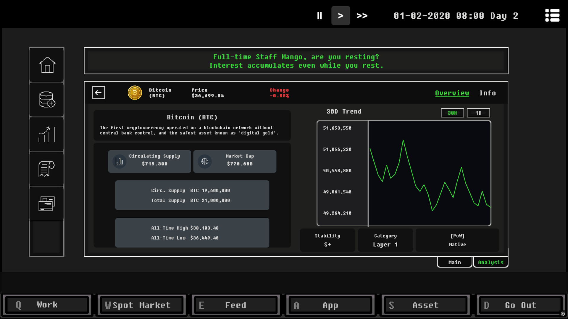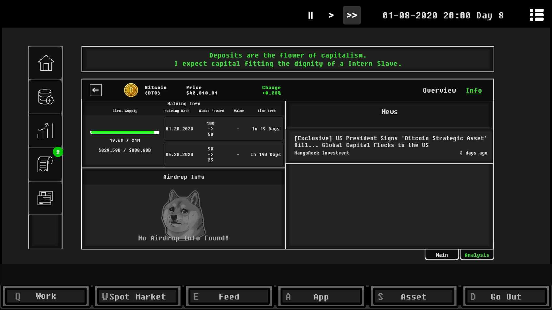 승진과 성장: 수익을 회사에 납입하여 당신의 가치를 증명하세요. 인턴에서 시작해 더 높은 직급으로 승진할수록, 고성능 투자 도구와 부동산 등 특별한 투자 권한이 하나씩 해제됩니다.