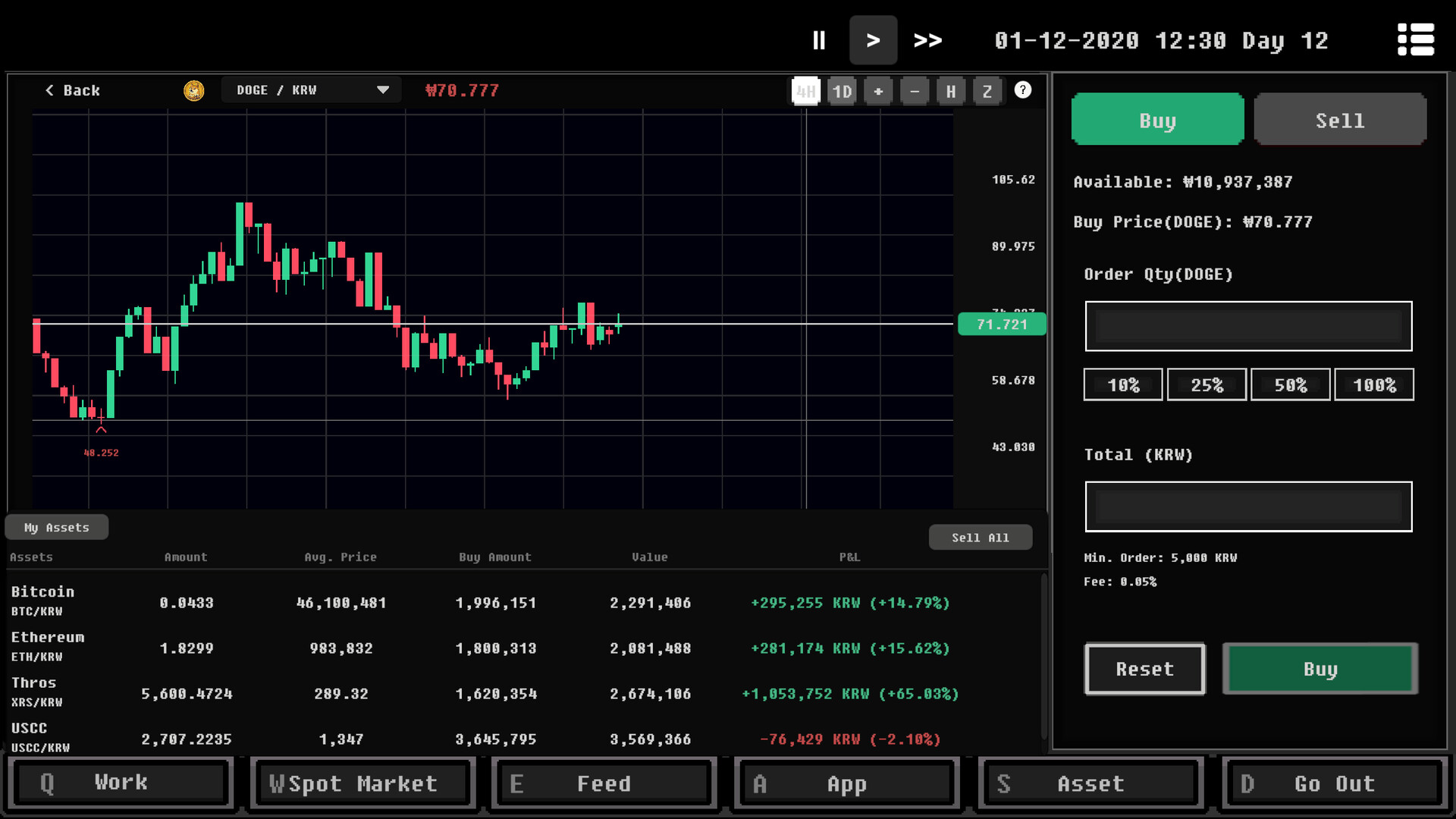 리얼한 트레이딩 경험: 비트코인부터 다양한 알트코인까지, 실시간 차트를 분석하고 매수/매도 타이밍을 잡으세요.